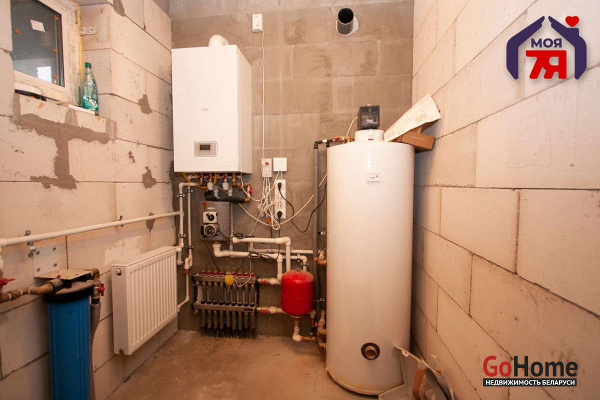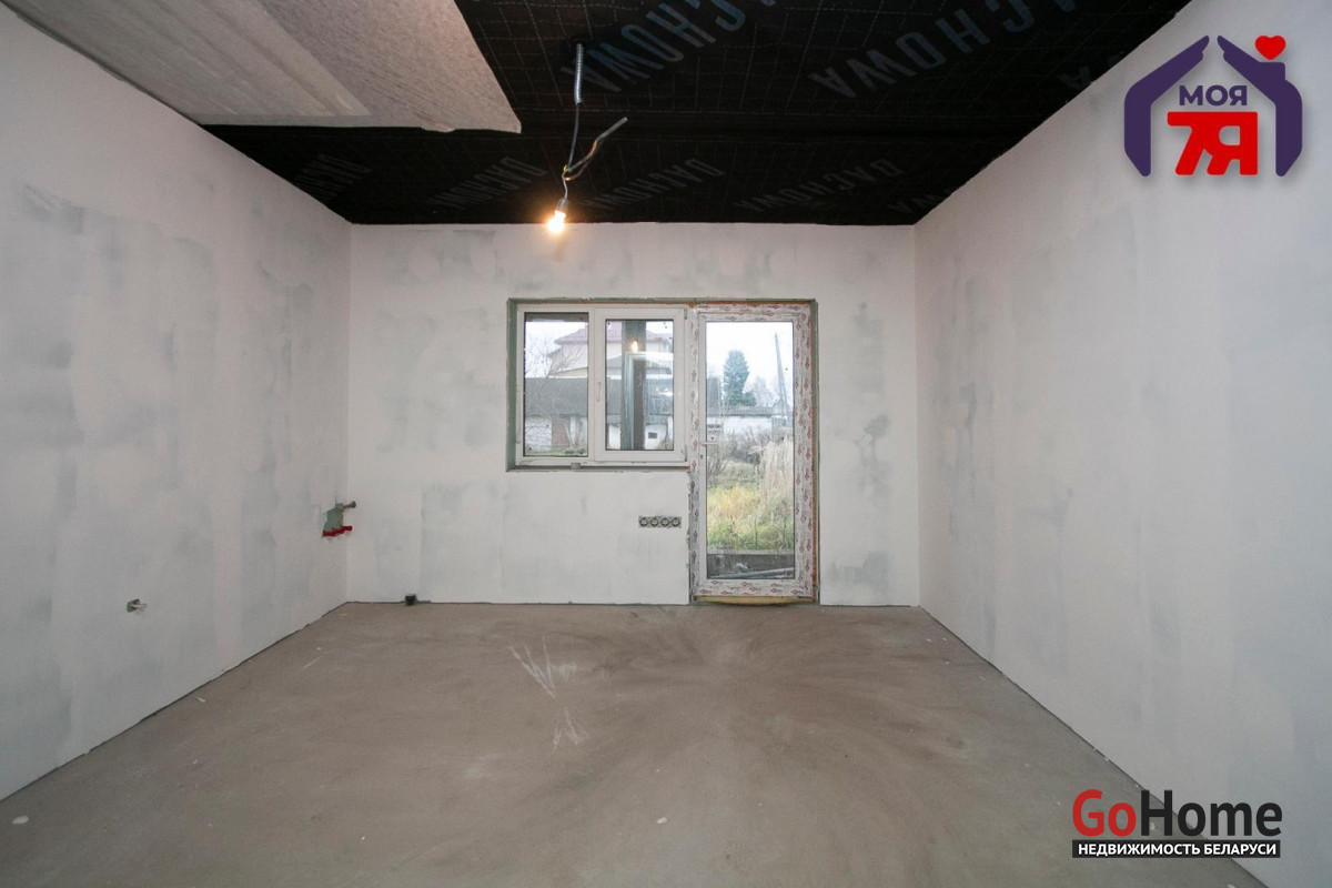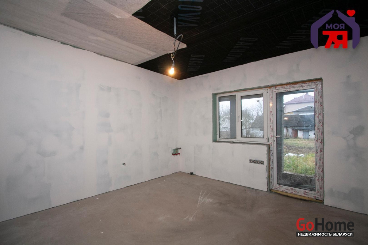 - Силикатно-блочный одноуровневый дом общей площадью 120,4 кв.м, из которых 79 кв.м - жилая площадь, а кухня занимает 15,3 кв.м. Дом 2025 года постройки готов на 90%. Это отличное решение для комфортного проживания в просторном и функциональном доме.- В доме предусмотрены центральное отопление, водоснабжение и канализация, а также электричество и газ - все для вашего комфорта и удобства. Кровля выполнена из металлочерепицы, что обеспечивает надежность и долговечность.- Отопление осуществляется девятью контурами теплого пола от турбированного котла Protherm, что позволяет индивидуально регулировать климат в каждой комнате. Блочная часть дома утеплена пеноплексом, деревянная часть дома утеплена по внутренней стороне эковатой 10-12 см и зашита гипсокартоном, что позволяет сохранять тепло и деньги в зимнее время, а в летний период комфортную прохладу в доме. Нагрев воды осуществляется с косвенным нагревом воды на 300 л., что избавит вас от перепадов температуры и создаст кофморт при утренних водных процедурах.- Фасад дома обшит металлическим профилем под блокхаус толщиной металла 0,5 мм., что создает вид деревянного дома и избавит Вас от ежегодных ритуалов по обработке дома защитными пропитками.- Дом расположен на участке площадью 12 соток, что предоставляет простор для создания садов, огородов и зон для отдыха.- Все строительные материалы остаются новому хозяину (комплект выключателей и розеток, смеси и прочие материалы), а так же есть возможность спланировать участок и установить забор из металлопрофиля, либо из металлического штакетника в любой цвет на выбор покупателя.- Дом находится всего в 53 км от МКАД, в Брестском направлении, что обеспечивает удобный доступ к Минску. Улица Карла Маркса отличается развитой инфраструктурой: в шаговой доступности - детский сад, школы, лыжероллерная трасса и зеленая лесопарковая зона для прогулок.- Городское сообщение с Минском обеспечивается регулярными маршрутными такси. Также рядом с домом расположен автовокзал, что делает поездки в столицу удобными и быстрыми. Это отличный выбор для тех, кто ищет сочетание уединения и удобства городской жизни.
