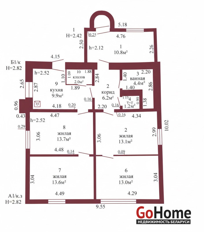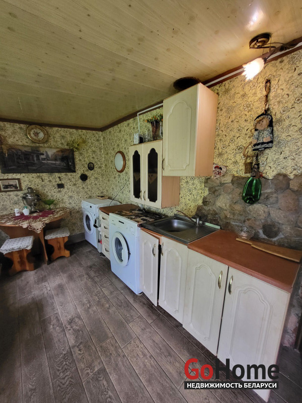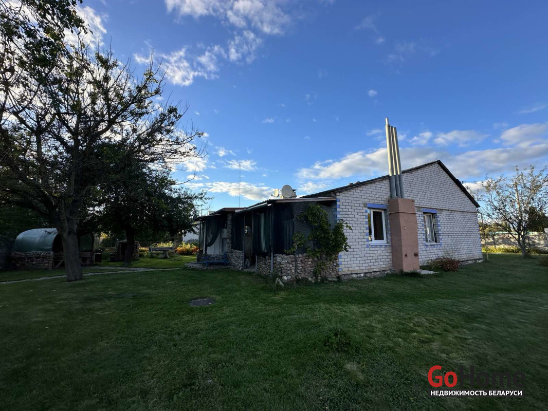 Общая площадь дома составляет 87.9 кв.м., из которых 53.4 кв.м. – жилая площадь, а 9.9 кв.м. занимает кухня. Дом построен из дерева и облицован кирпичом, что обеспечивает надежность и теплоизоляцию. Крыша покрыта шифером, а окна частично заменены на ПВХ, что добавляет современности и энергоэффективности. Высота потолков в доме – 2,82 м, что создает ощущение простора и свободы.