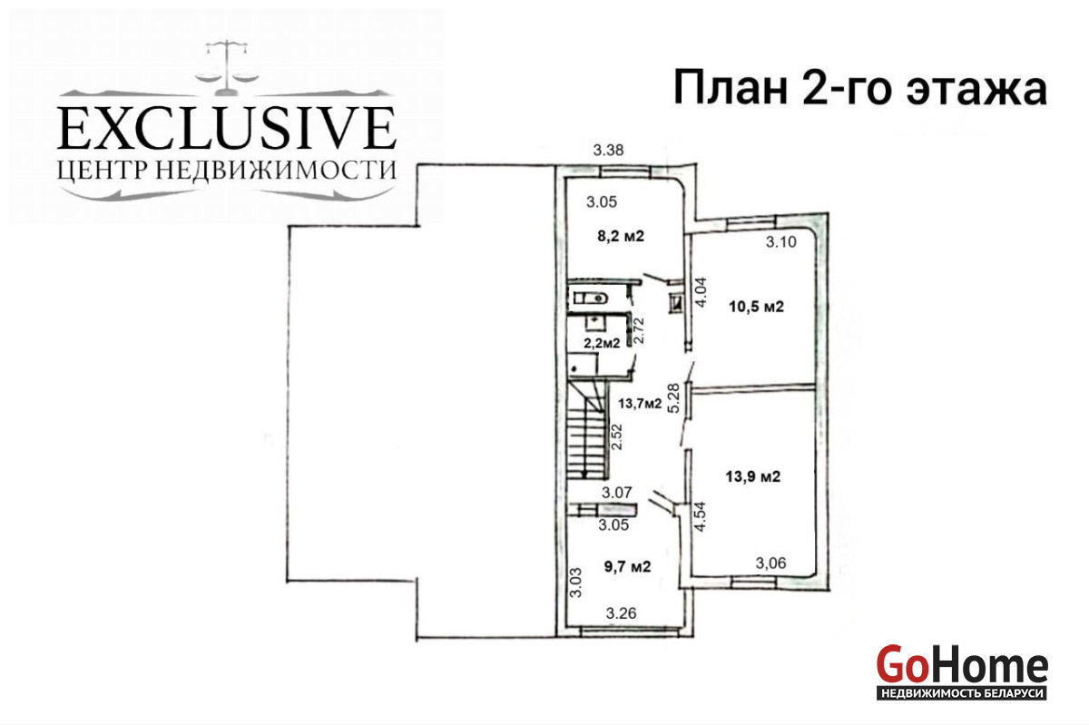 Второй этаж: 3 спальни, раздельный санузел