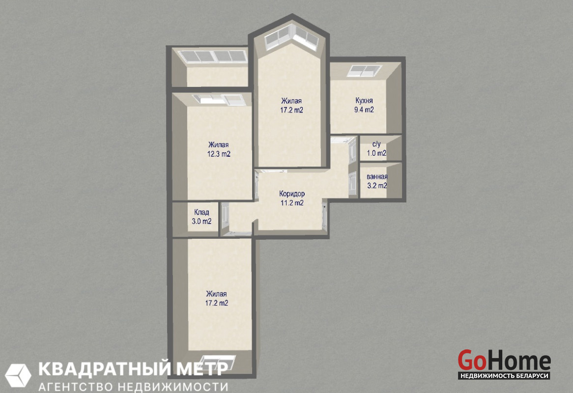 Квартира на 4 этаже, окна на 2 стороны. Все комнаты раздельные. Гостиная с эркерным окном. Просторная кухня 9,4 м. Гардеробная. Застекленная лоджия.