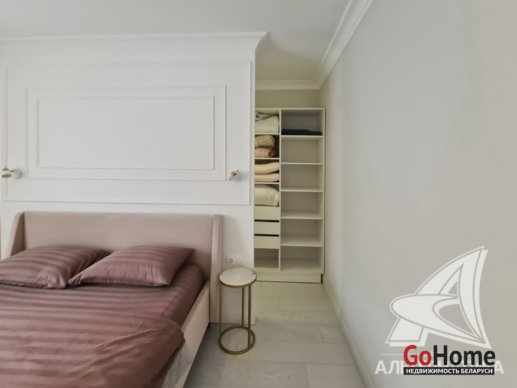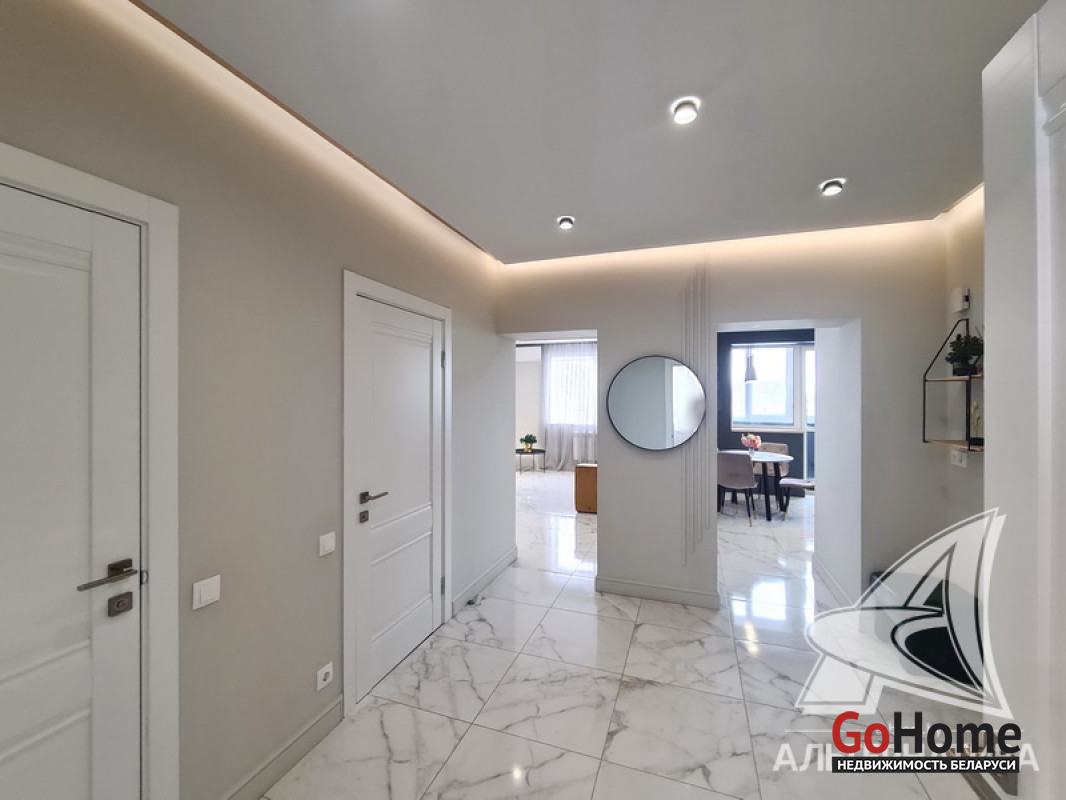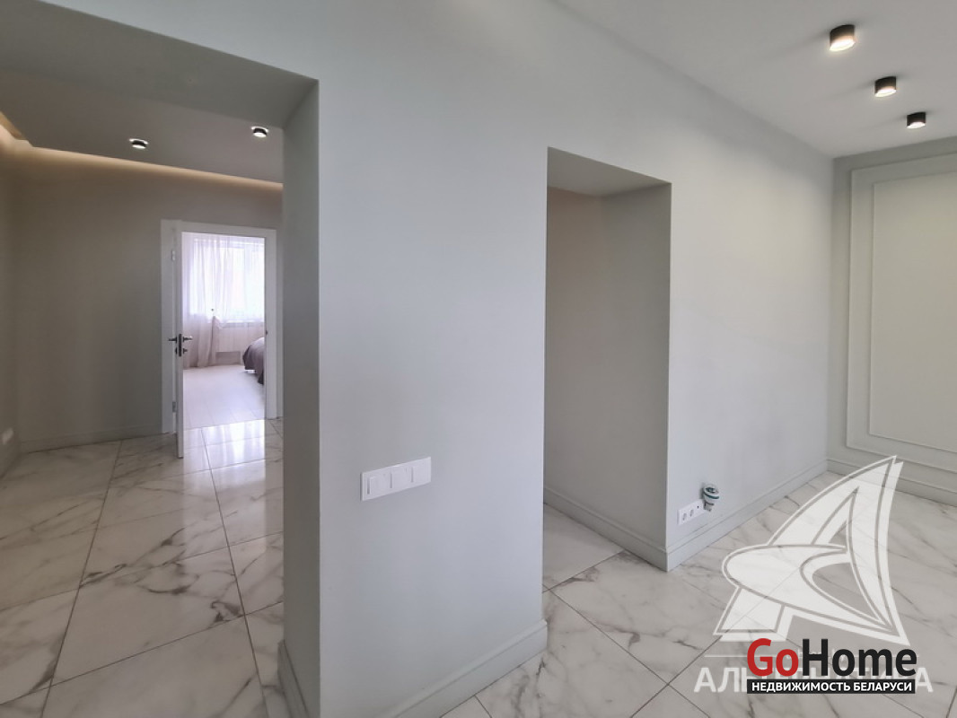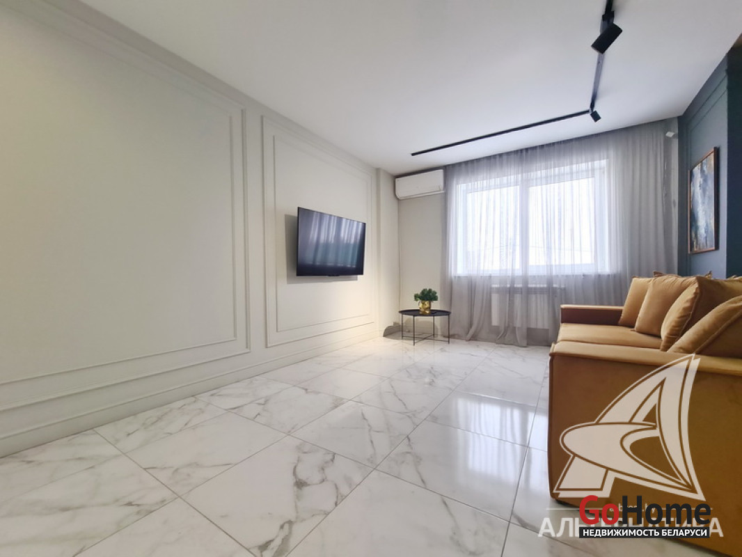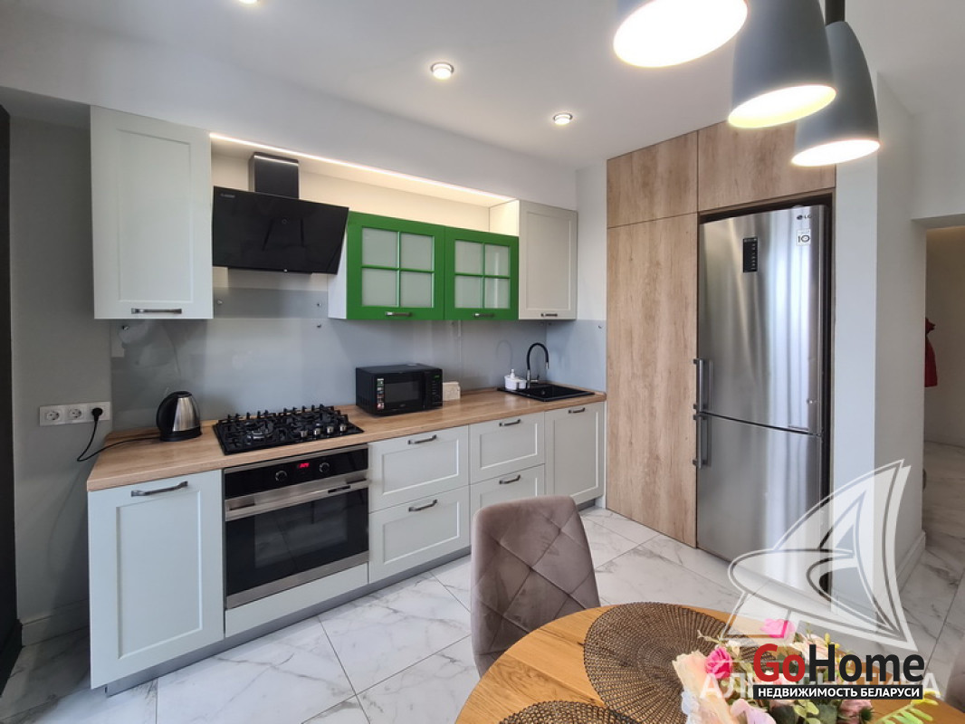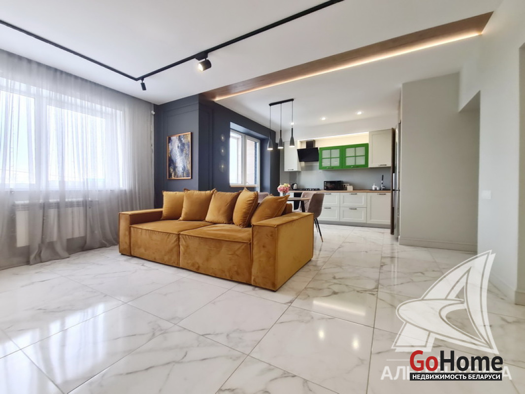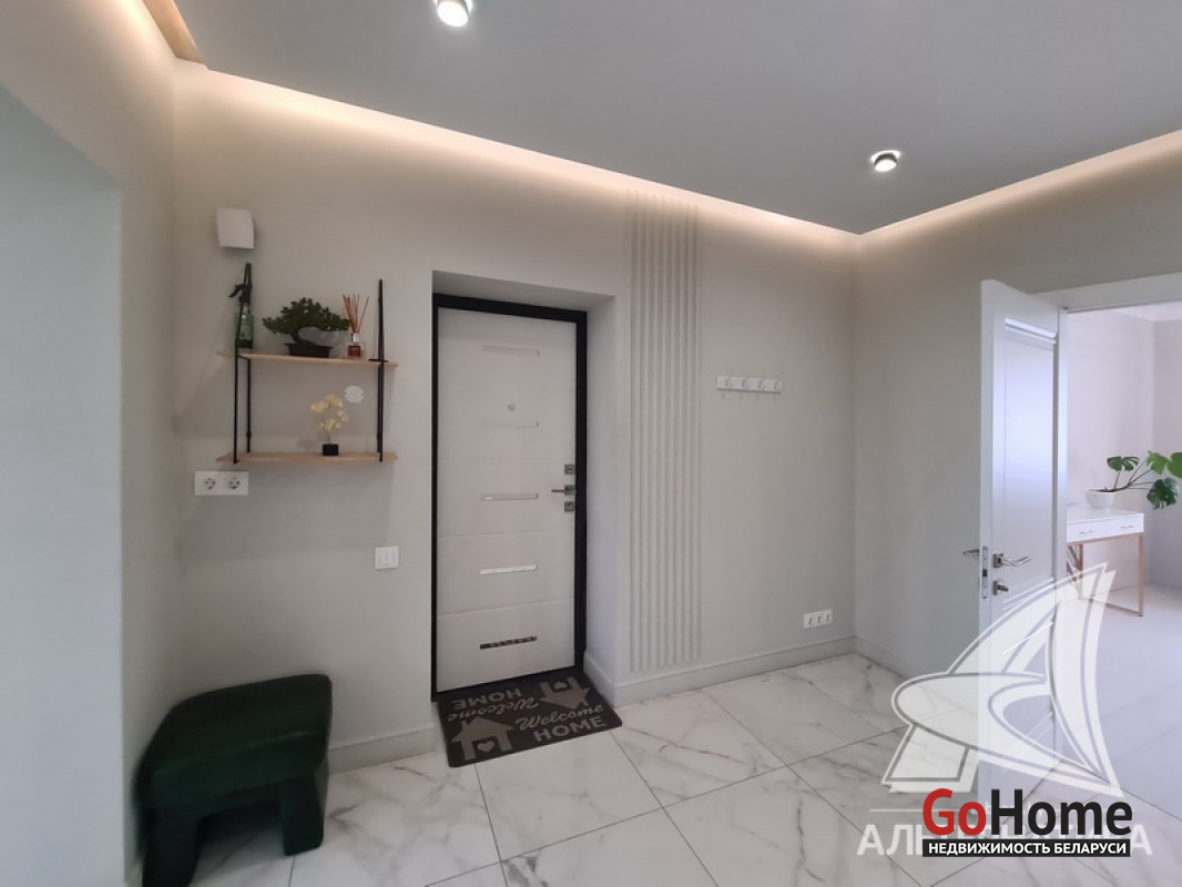 1-комнатная квартира, г. Брест, ул. Высокая, 2022 г.п., 2 / 3 кирпич, 71,3 / 69,3 / 21,3 / 12,7, санузел раздельный, лоджия застеклена, подвал, стеклопакеты, межкомнатные двери - МДФ, потолки с разноплановой системой освещения из гипсокартона (2,73 м), полы (положены на стяжку) - ламинат (в спальне) и плитка (в кухне, в гостиной), на стенах декоративная окраска, в санузле угловая ванна, инсталляция, гигиенический душ, подогрев пола, автономная газовый котел. В квартире остается вся мебель и техника (кроме: телевизора, холодильника, стиральной машины, посудомоечной машины - по договоренности). Квартира с индивидуальными дизайнерскими решениями. Квартира расположена на две стороны. Окна спальни выходят во двор. Чистый подъезд, на стенах декоративная отделка штукатуркой. Есть своя закрытая территория. Во дворе парковка для автомобилей. Лот - 260224