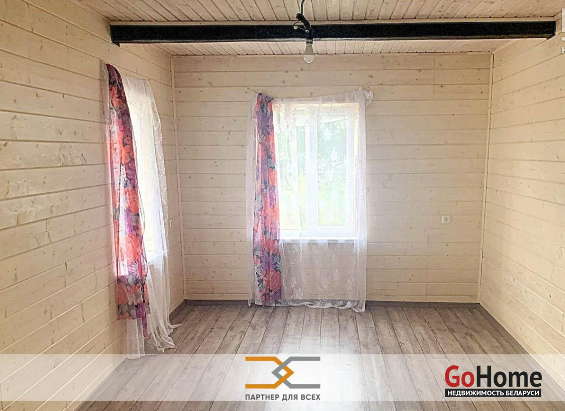 В комнатах отделка деревом и покраска стен и потолков. В кухне стены и потолок обшиты гипсокартоном. В санузле на полу и стенах плитка.