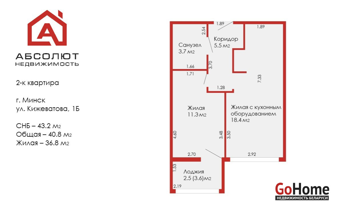 -Квартира: площадь квартиры по СНБ -43,2м2, общая площадь-40,8м2, жилая–36,8м2. Это идеальное место для комфортной жизни семьи. Квартира светлая, солнечная, окна квартиры выходят во двор. Квартира расположена на 5 этаже. В квартире 2 окна от пола до потолка, что задает высокий уровень инсоляции-естественного освещения солнечными лучами в помещении. Высота потолков -2,74м. Санузел совмещенный, площадью-3,7м2.