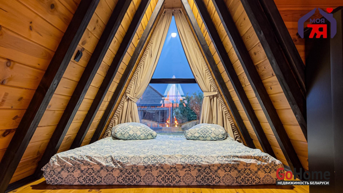 А-фрейм — компактный двухэтажный дом для 4 человек с кухней, душевой, террасой с видом на реку Жучка. Отлично подходит для отдыха на природе вдали от города.