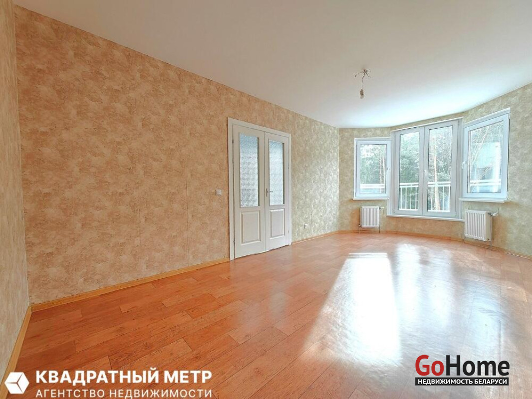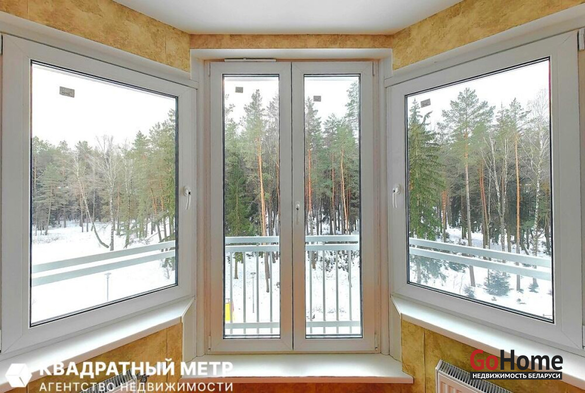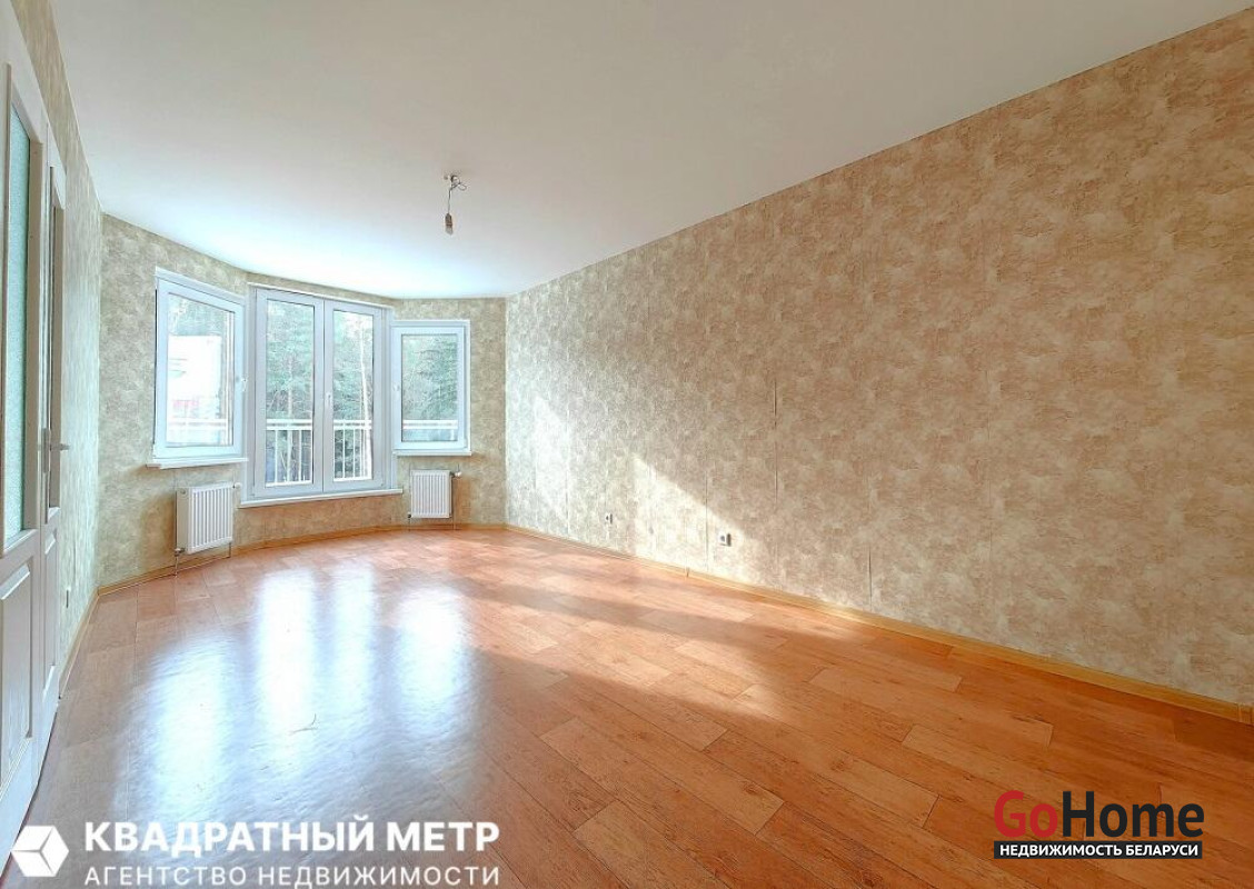 Удобная рациональная планировка с просторной гостиной и выходом из нее в кухню и прихожую. Огромная кухня 10,1м.кв. мечта любой хозяйки. Большая спальня с выходом в застекленную лоджию. Все окна (стеклопакеты ПВХ) выходят на южную сторону, поэтому квартира очень светлая. Ошеломительный вид на лес, детскую и спортивную площадку придает ценность загородной жизни в комфортной квартире. Потолок идеально ровный, на стенах обои, на полу уложен линолеум. Во вместительной ванной комнате есть стиральная машинка, на полу плитка. Кухня обустроена всем необходимым. Имеется небольшая комната 4.7м.кв. которую можно использовать как гардеробную.
