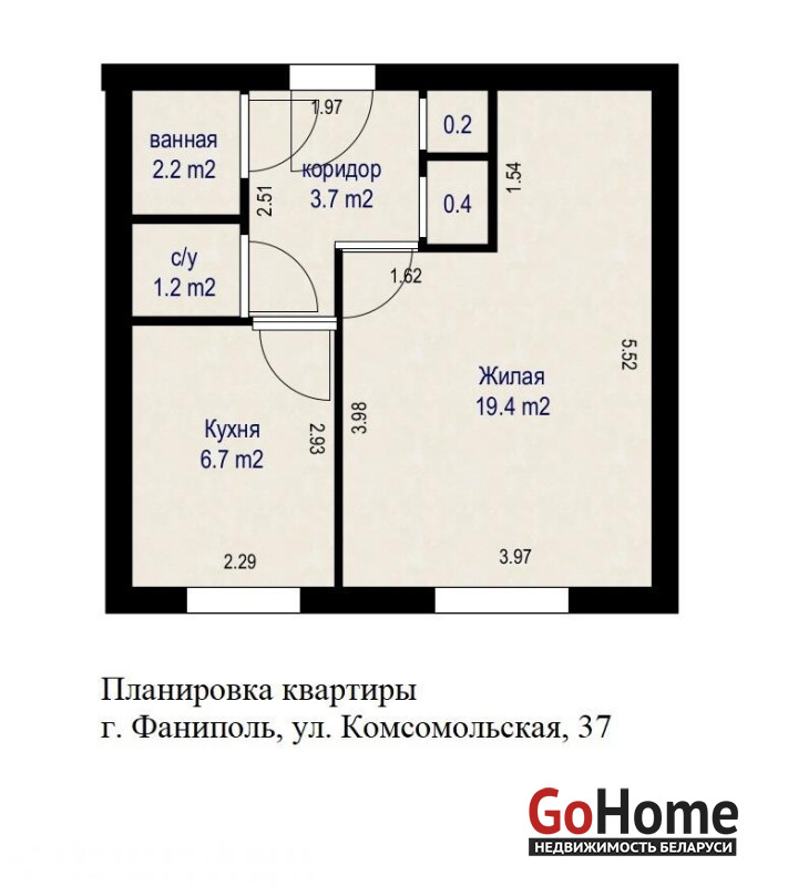 Просторная комната с нишей, 19,4 м2, где достаточно места для обустройства спальной зоны. Кухня- 6,7 м2. Санузел раздельный.