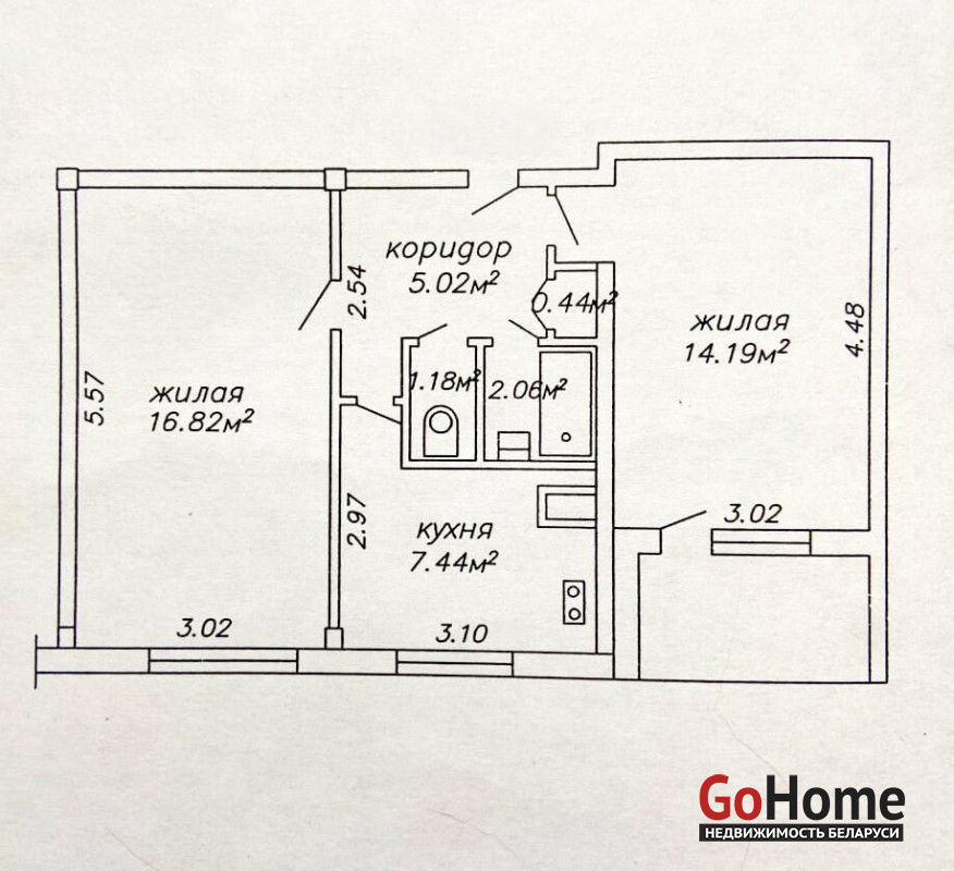 *** Площадь по СНБ - 49 м2; Общая - 47.15; Жилая: 31 м2; Кухня: 7.44 м2;