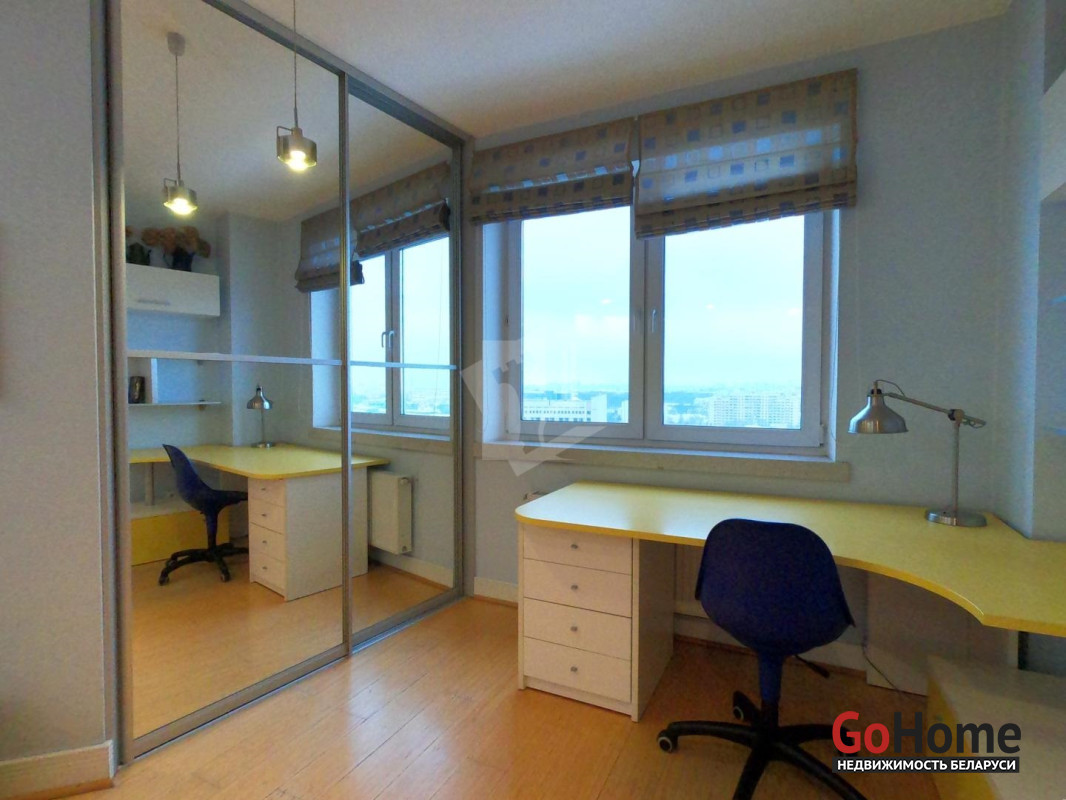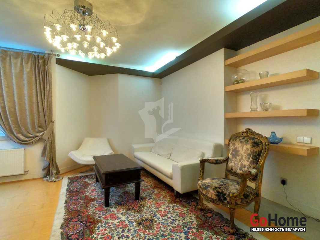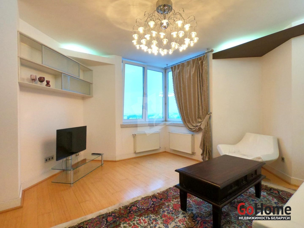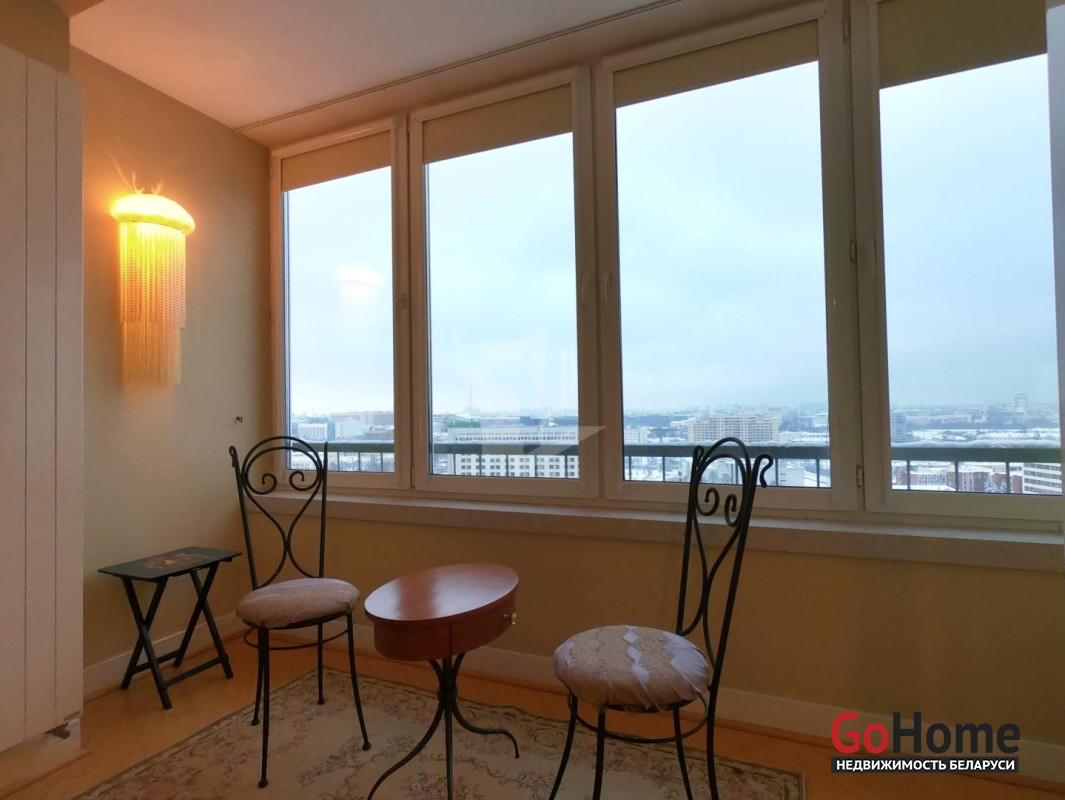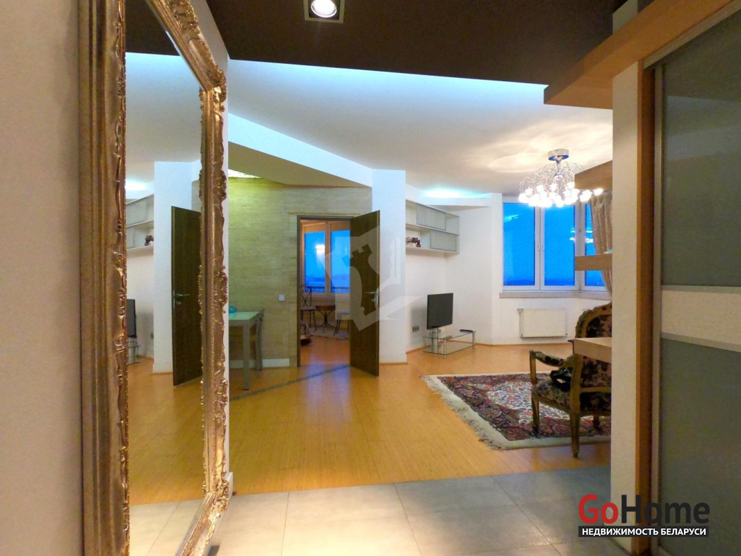 Четырехкомнатная квартира в тихом центре Минска. Дом 2004 года постройки повышенного комфорта. В квартире выполнен качественный ремонт с использованием натуральных импортных строительных материалов. На полу натуральный паркет. Полная комплектация мебели и бытовой техники, необходимой для комфортного проживания: ЖК телевизор, стиральная машина, посудомоечная машина, современная варочная панель, духовой шкаф, холодильник Side-by-side, бойлер, пол с подогревом, а также мелкая бытовая техника. В квартире два санузла с ванной и душевой кабиной. Каждая комната оборудована вместительным шкафом-купе или гардеробной комнатой. Проведено оптоволокно. Территория дома находится под видеонаблюдением, установлен шлагбаум. Рядом с домом благоустроенная детская площадка. Метро в шаговой доступности. Из окон открывается великолепный вид на город, стадион Динамо и набережную реки Свислочь. Квартира сдаётся на длительный срок. Проживание с животными обсуждается.