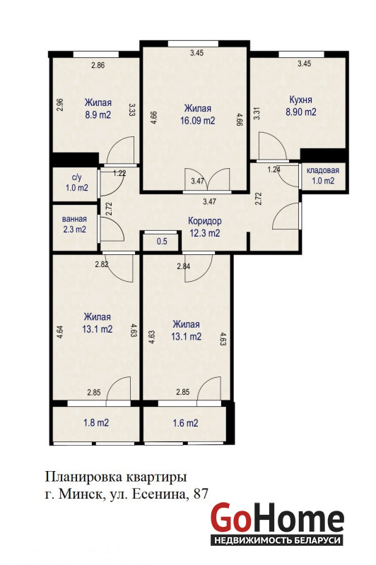 Простор и комфорт:Площадь по СНБ 81 кв.м с четырьмя раздельными просторными комнатами 16.09, 13.1 и 13.1, 8.9 кв.м, расположенными на разные стороны – максимум естественного света и свежего воздуха!