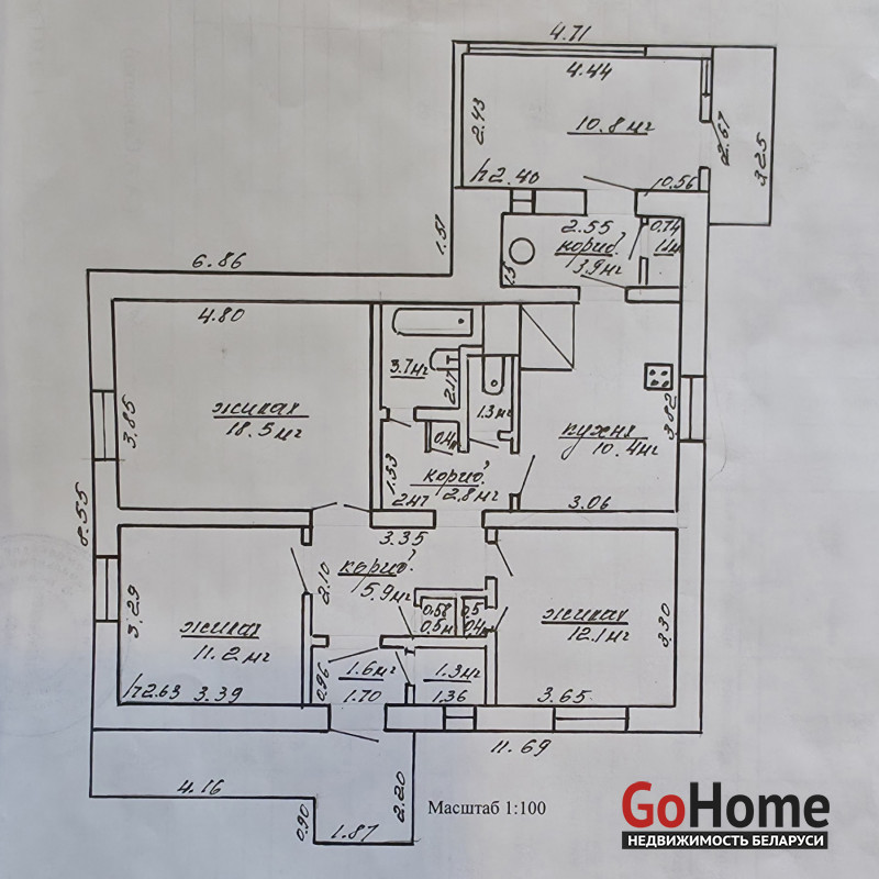 Количество комнат: 4 (3 из них изолированные) — места хватит для большой семьи.