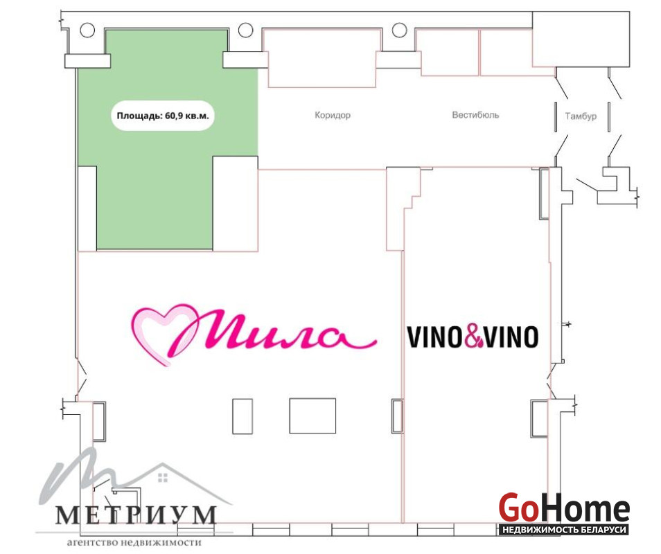 · Площадь: Помещение 60,9 кв. м оптимально для розничной торговли, ПВЗ или сферы услуг .