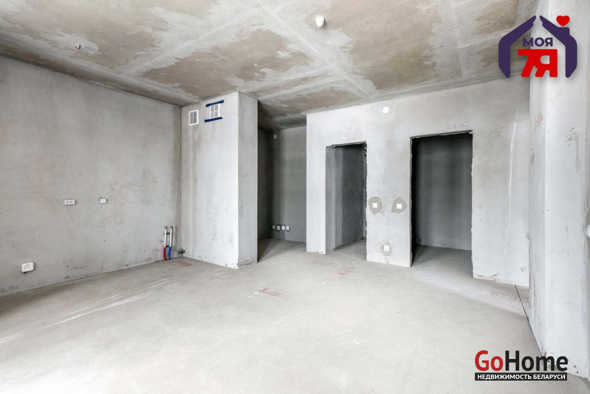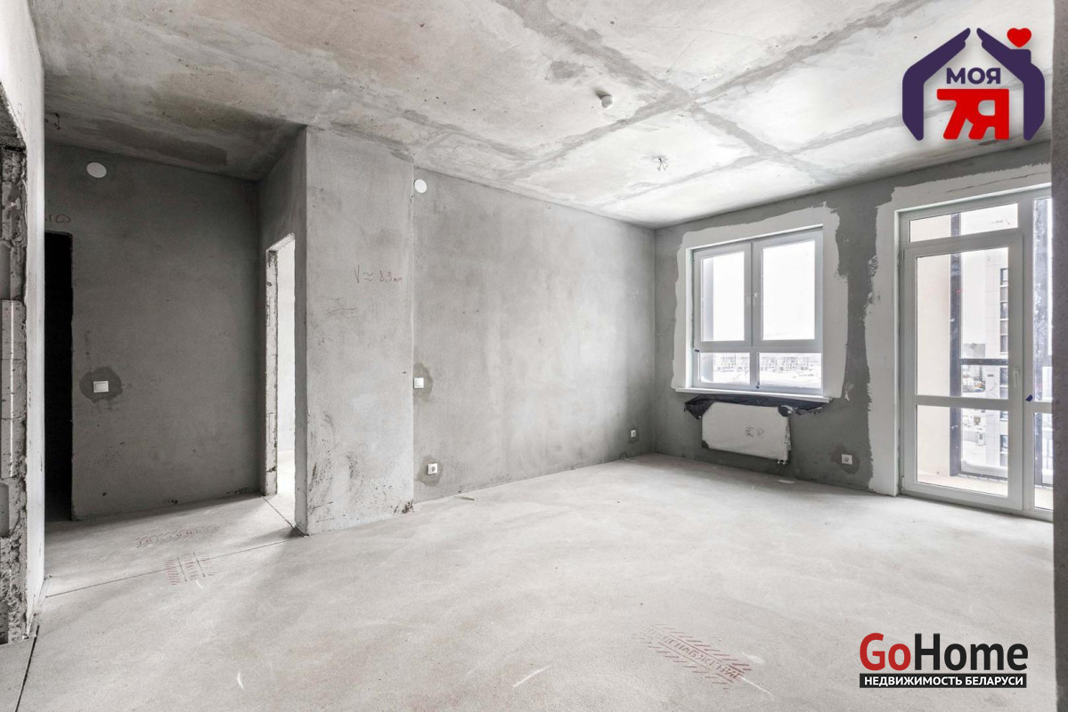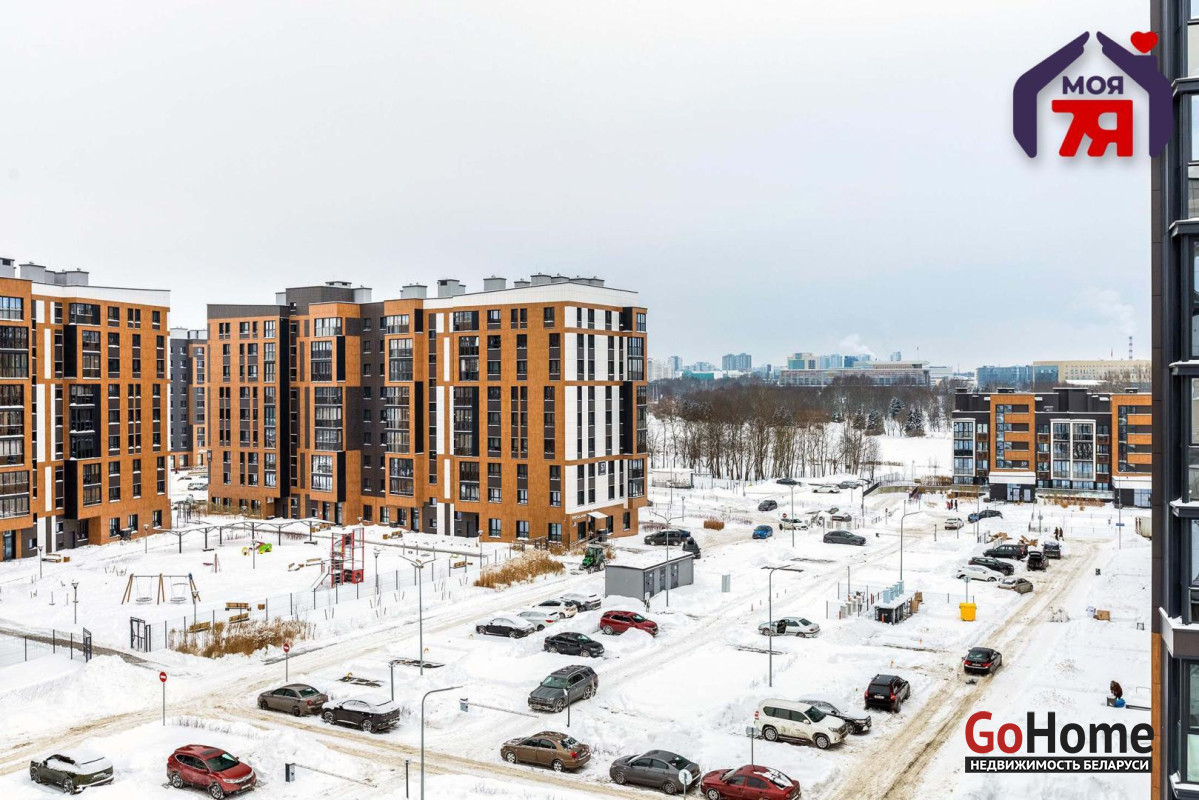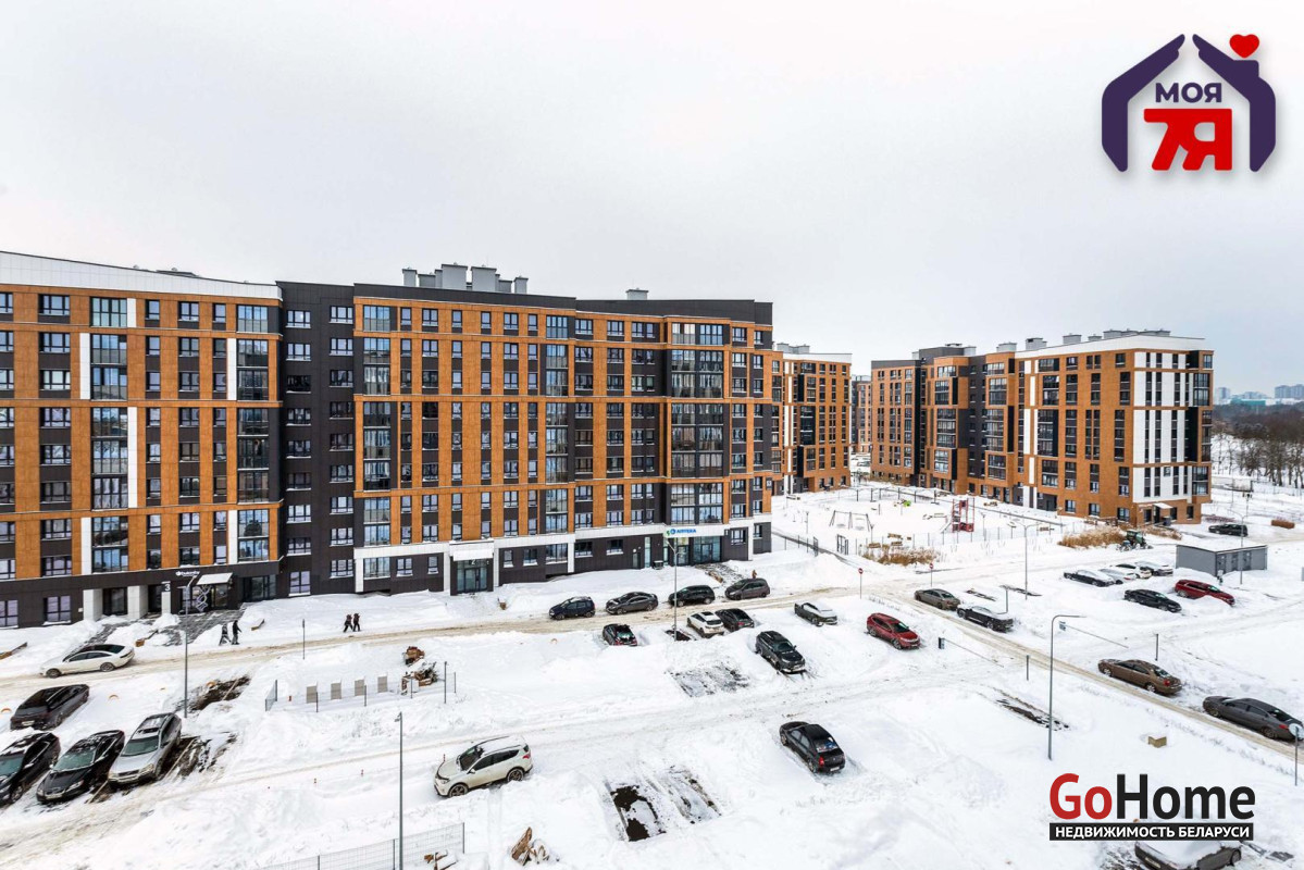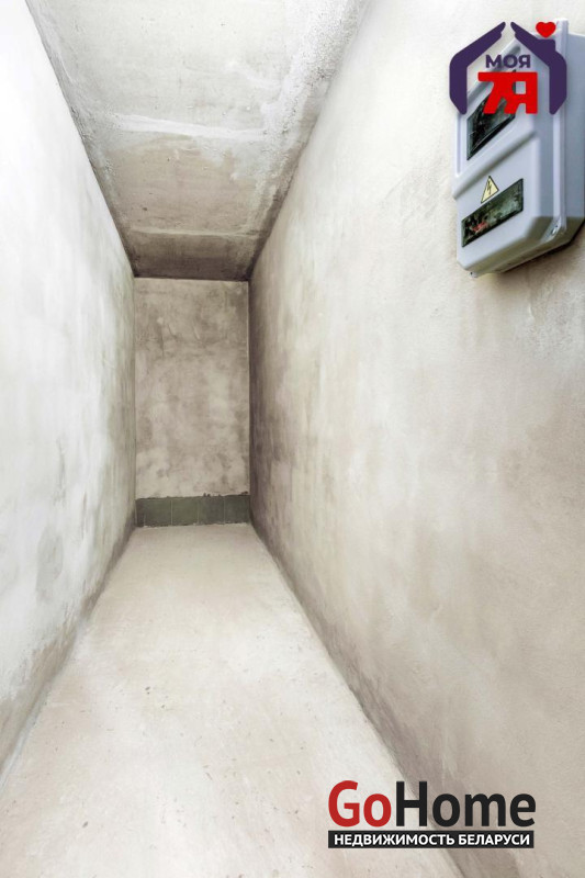 Окна на три стороны, застеклённая лоджия, кладовая 7,2 кв.м. и парковочное место включены. Квартира без отделки, но с разведёнными коммуникациями - идеальная база для ремонта. Престижный район Минска, рядом парки, ТЦ «Замок», удобный выезд и транспорт.