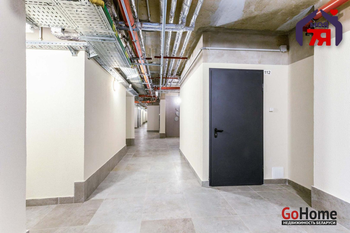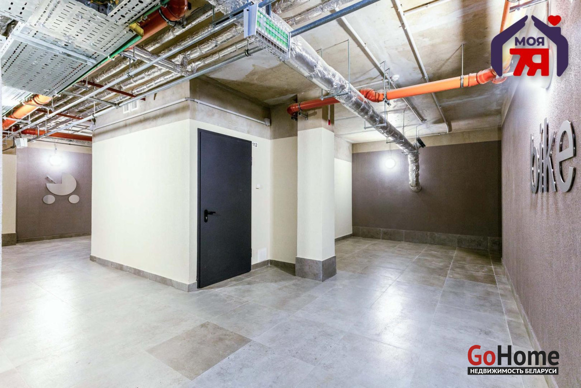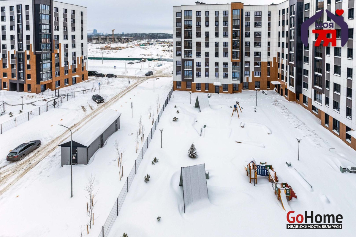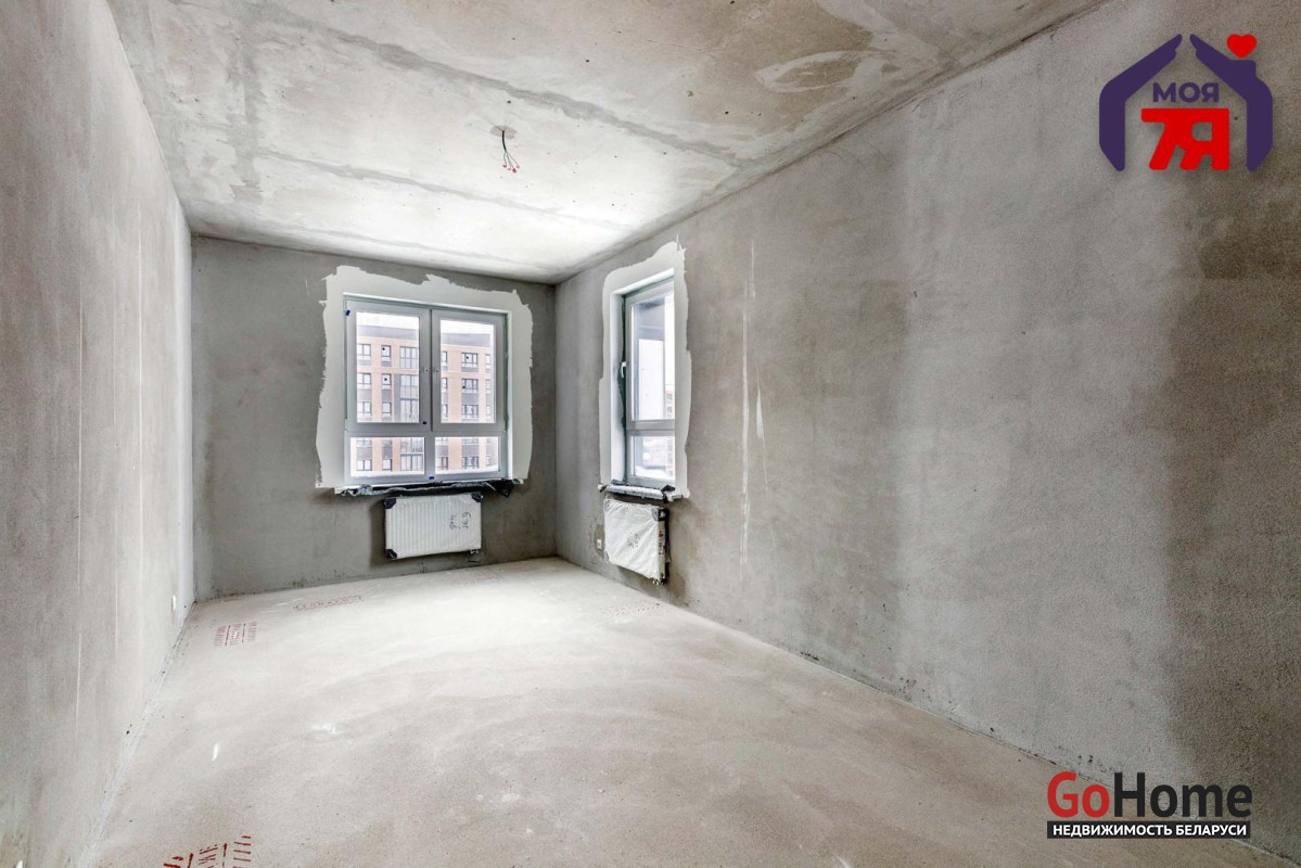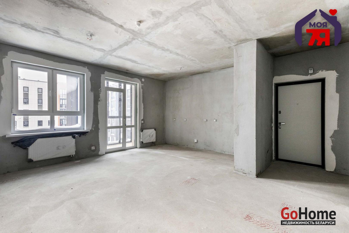 Окна на три стороны, застеклённая лоджия, кладовая 7,2 кв.м. и парковочное место включены. Квартира без отделки, но с разведёнными коммуникациями - идеальная база для ремонта. Престижный район Минска, рядом парки, ТЦ «Замок», удобный выезд и транспорт.