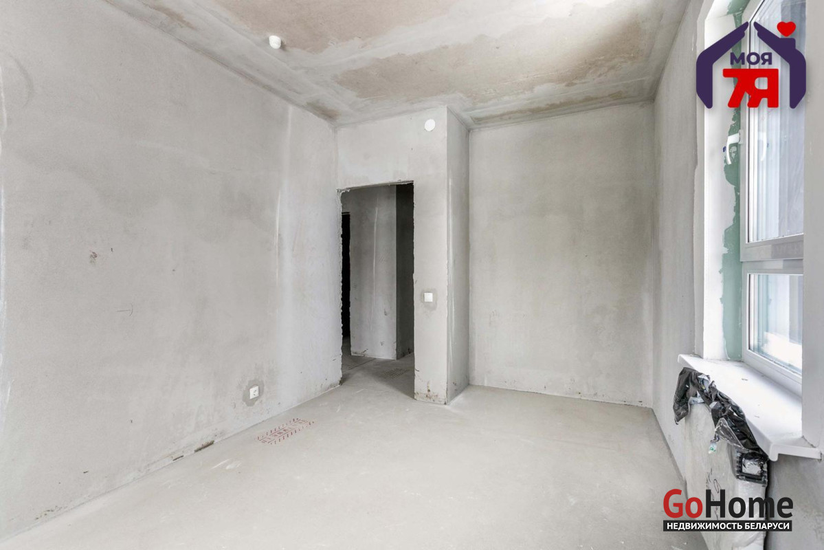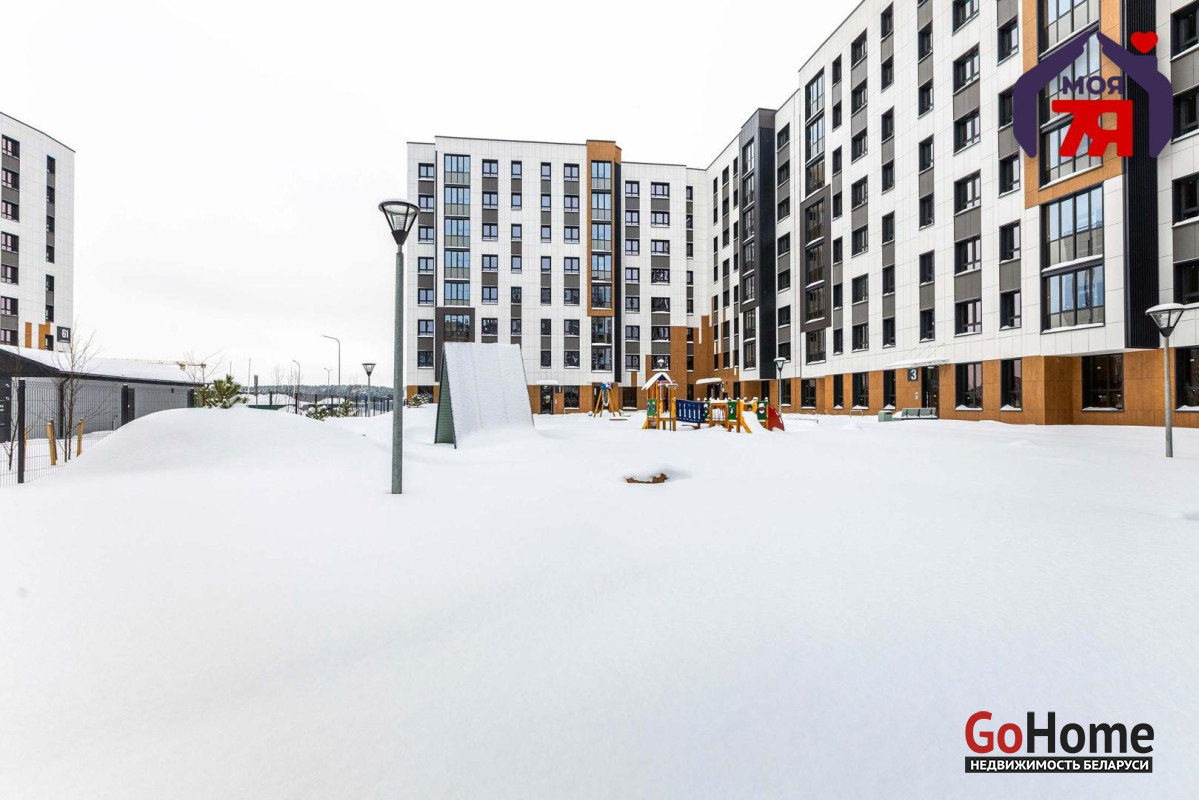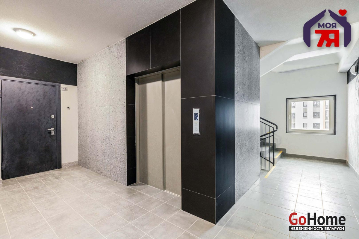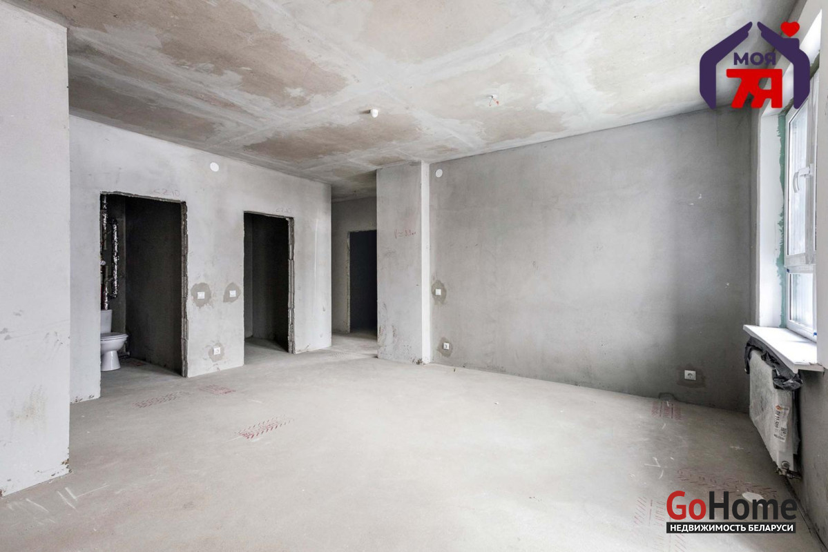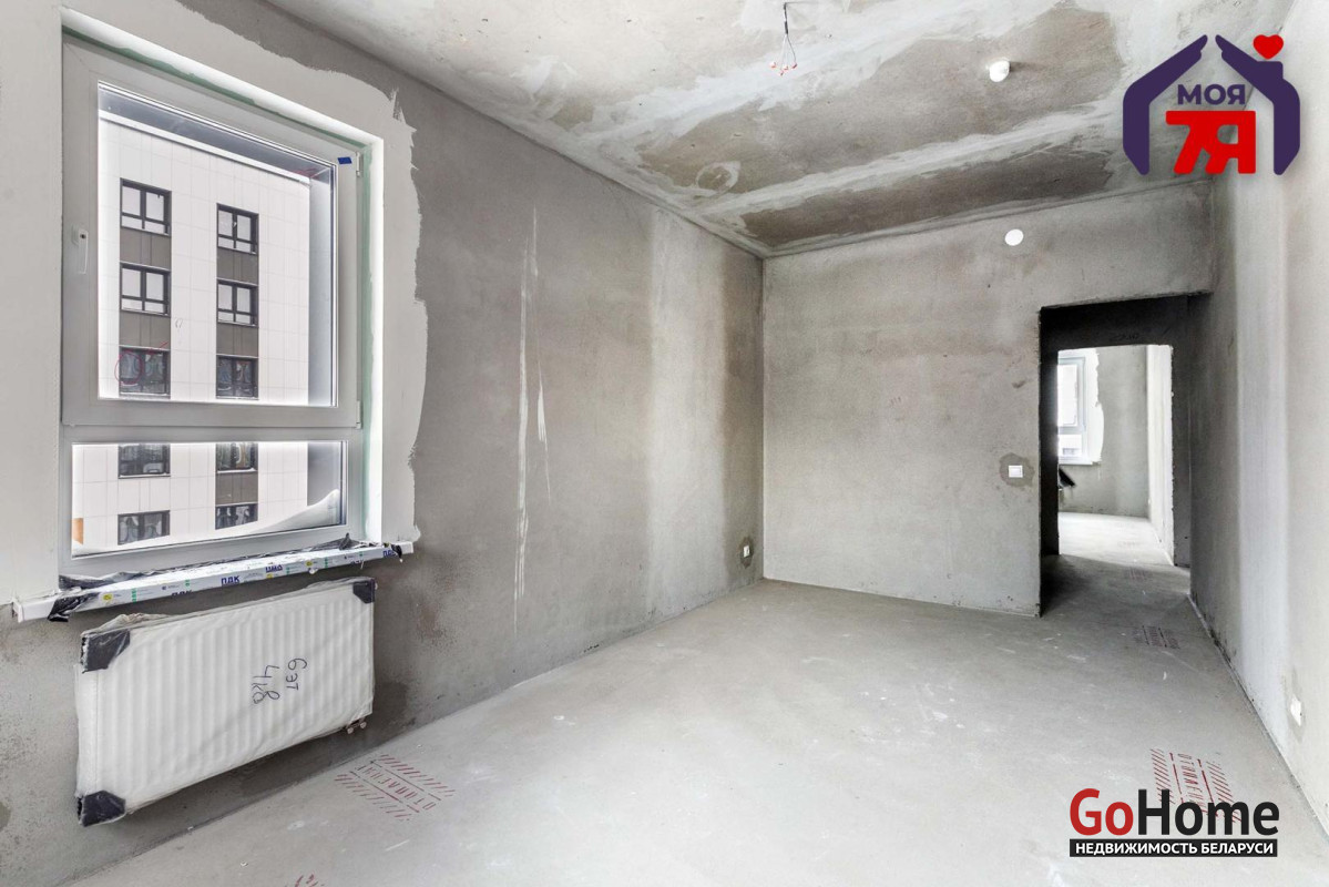Окна на три стороны, застеклённая лоджия, кладовая 7,2 кв.м. и парковочное место включены. Квартира без отделки, но с разведёнными коммуникациями - идеальная база для ремонта. Престижный район Минска, рядом парки, ТЦ «Замок», удобный выезд и транспорт.
