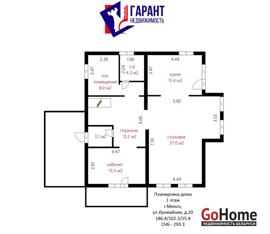 На первом этаже – просторная пятнадцатиметровая кухня с отдельным входом. Кухня переходит в солнечную 37-ми метровую столовую, кабинет с выходом на балкон