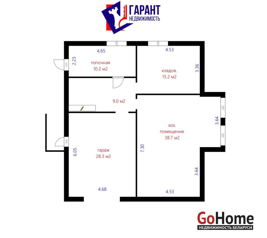 В цокольном этаже – 28-ми метровый гараж, 15-ти метровая кладовая и топочная
