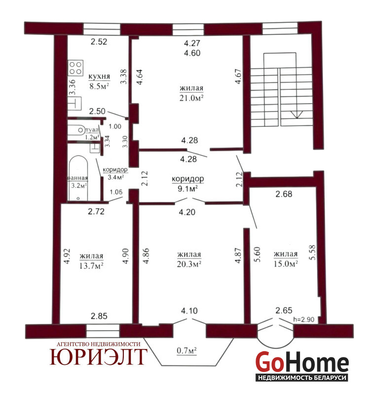 Просторная 4-комнатная квартира общей площадью 96,1 квадратных метров, расположенная на 3 этаже в кирпичном доме с толстыми стенами в историческом центре города. Квартира с большим потенциалом для реализации самых интересных дизайнерских проектов. Отличная эргономичная планировка