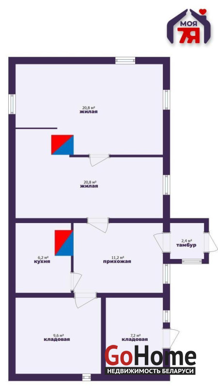 - Общая площадь дома составляет 74,2 по СНБ, 55 кв.м. общей из которых 37,6 кв.м. приходится на жилые комнаты, а кухня занимает комфортные 6,2 кв.м.