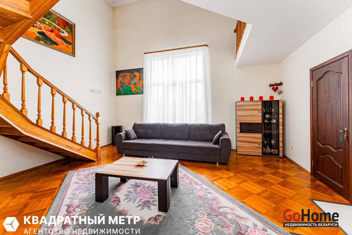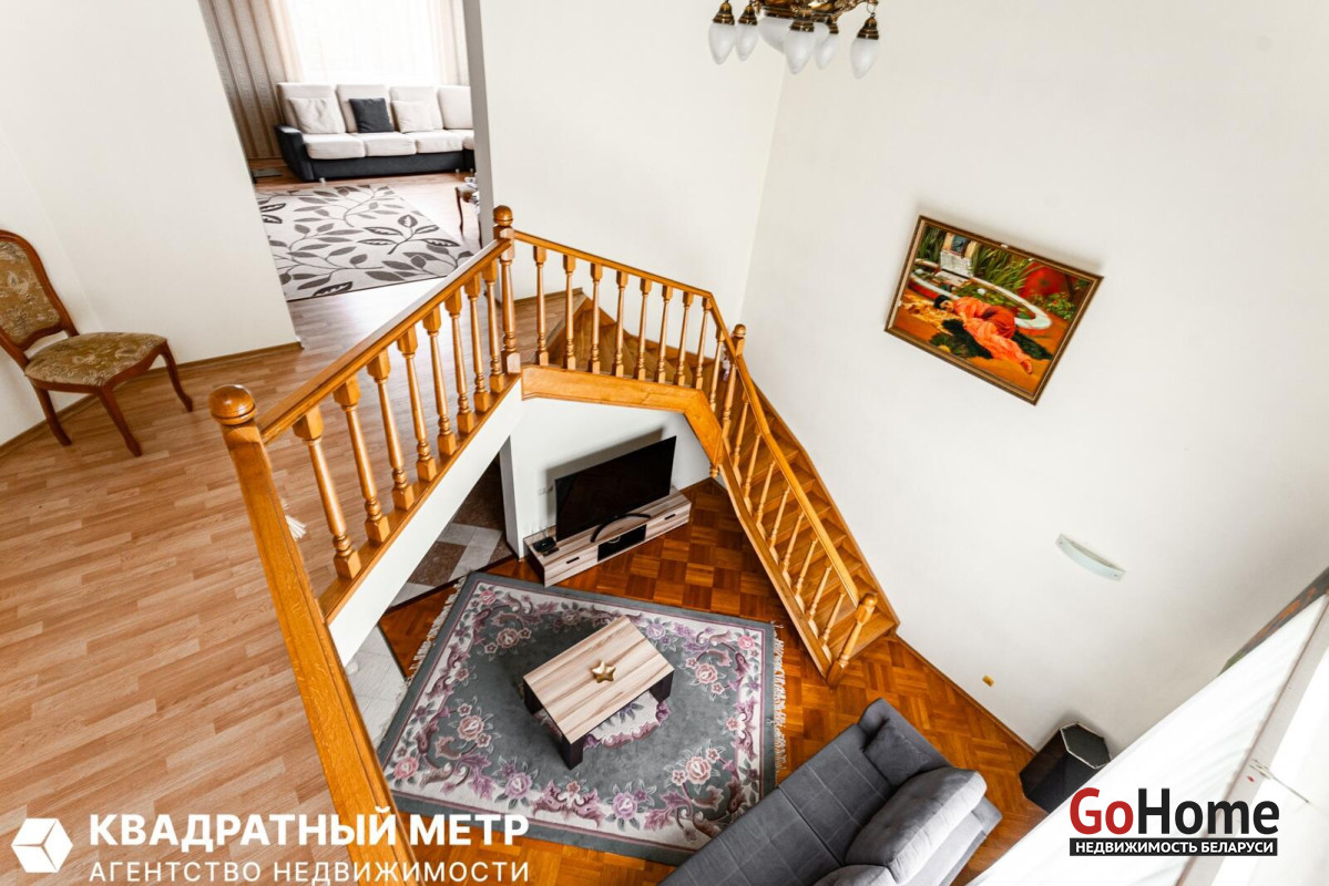 Трехэтажный дом построен по индивидуальному архитектурному дизайн-проекту и отличается продуманной планировкой и высокими потолками.