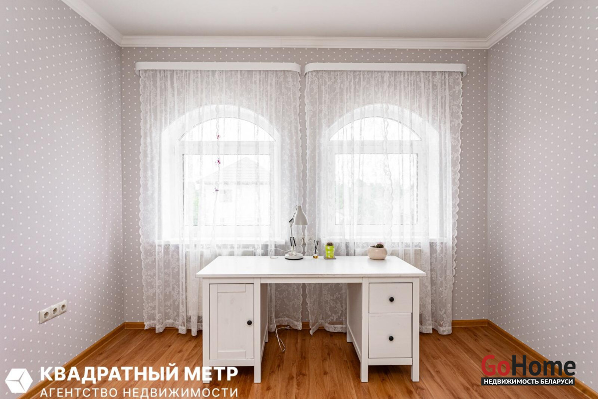 Дом состоит из просторной гостиной с камином, террасы, шести больших жилых комнат, кухни, гардеробной, двух санузлов, топочной, большой гостевой парковкой перед домом. В доме находятся все необходимые коммуникации, включая электричество, отопление, воду, канализацию и газ.