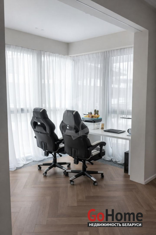 Квартира выполнена в спокойном современном стиле с использованием дорогих и качественных материалов. Пространство продумано для комфортной жизни и работы.