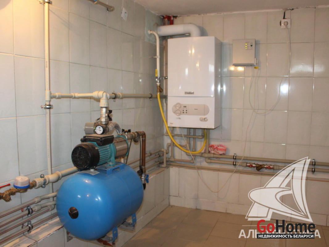 Коммуникации: отопление - газовый котел, газ - централизованный (в доме), водоснабжение - централизованный водопровод и скважина, электричество - централизованное, канализация - централизованная (по улице).