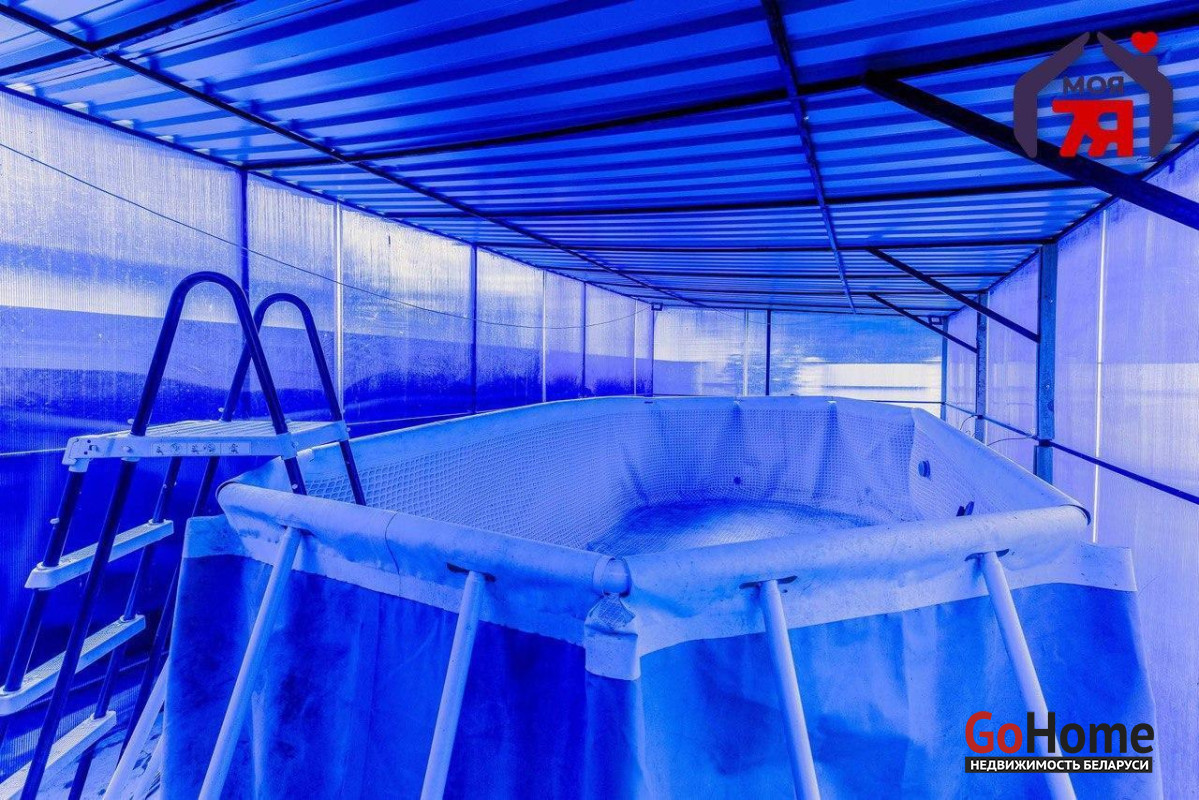 - Участок площадью 5 соток благоустроен и располагает всем для отдыха: баня для расслабления и восстановления сил, закрытый поликарбонатный бассейн для купания в любую погоду. Территория ухожена и готова к использованию.