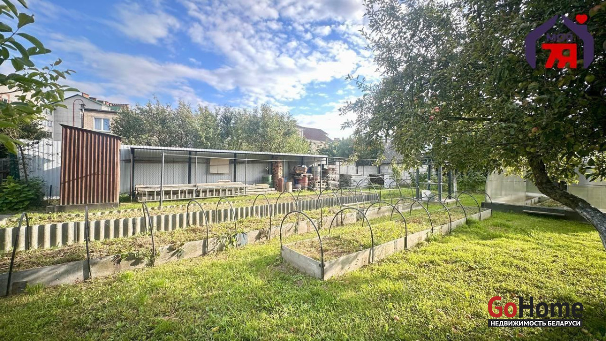 - На участке растут плодовые деревья: 3 грецких ореха, яблони, груши, черешня, сливы и персик. Посажен крыжовник и малина. Сделаны высокие грядки. Участок огорожен забором из металлического блок хауса.