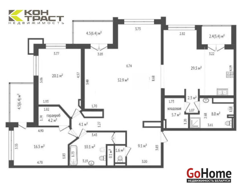 Площадь квартиры 175,6м2 – это две квартиры, объединенные в одну просторную для большой и дружной семьи.