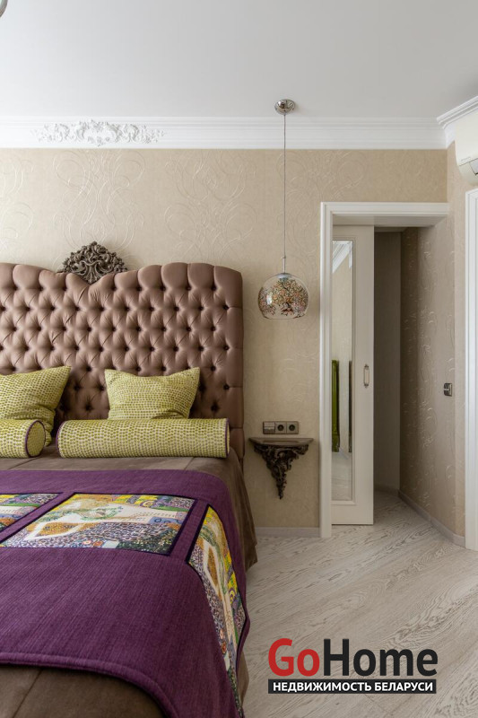 Полы: плитка в ванной, кухне, коридоре и балконе с подогревом; гостиная, спальни – натуральная паркетная доска.