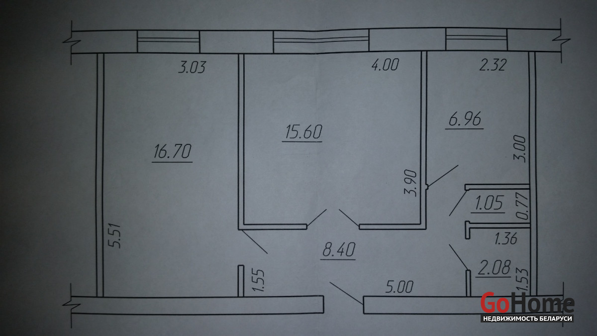 Общая площадь - 50,6 кв. м., жилая площадь - 32 кв.м.