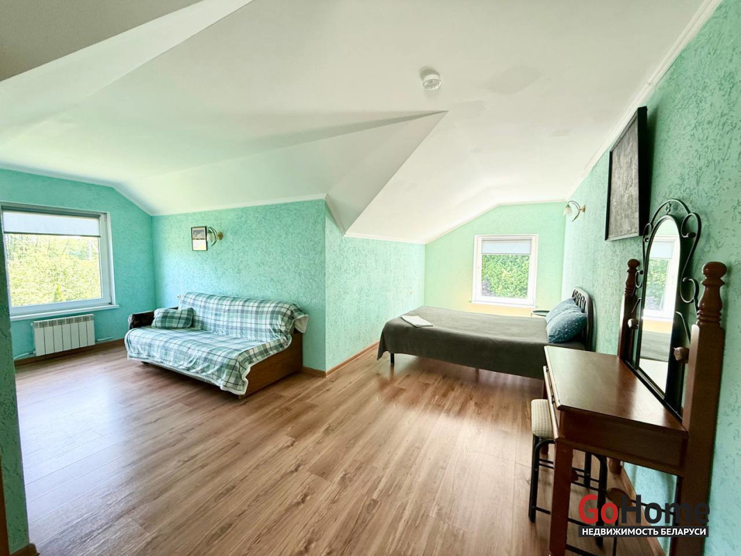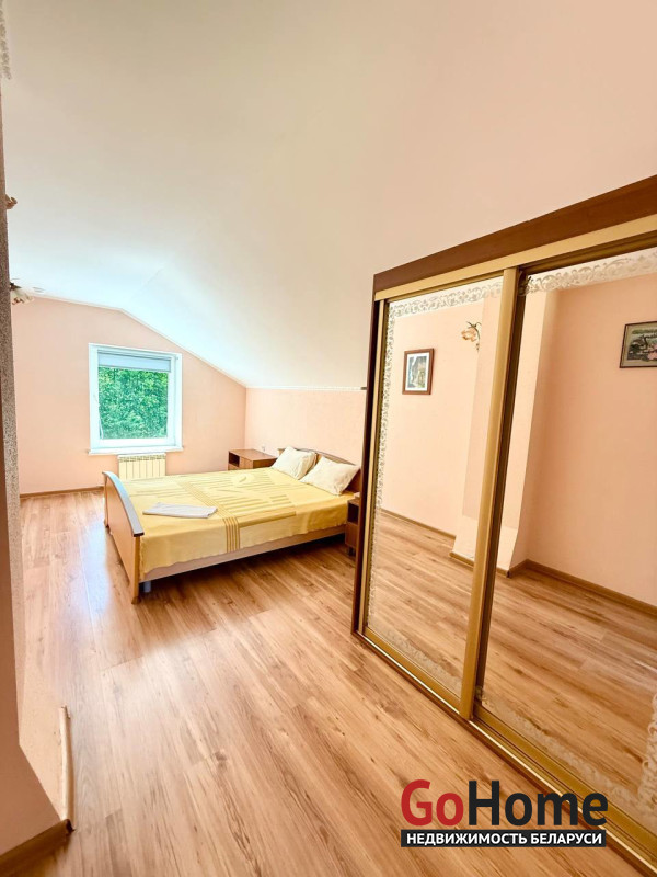 Общая площадь 138,1/ жилая 76,4/ кухня 34 м/кв, состоит из 5 комнат: 3 на первом этаже, 2 на втором и в цоколе бильярд, котельная, гостиная совмещенная с кухней и выходом на большую террасу.
