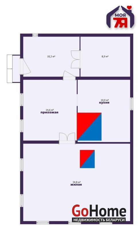 - Общая площадь дома составляет 79,5 кв.м., включая жилую площадь 34,8 кв.м. и просторную кухню 10,9 кв.м.