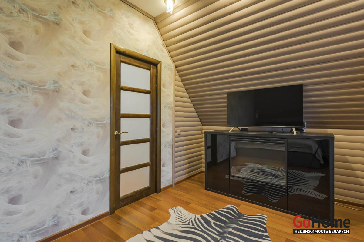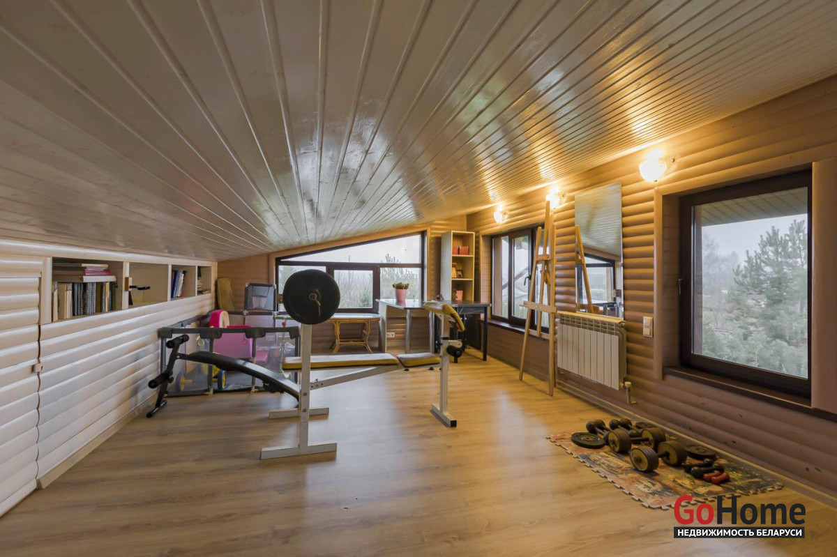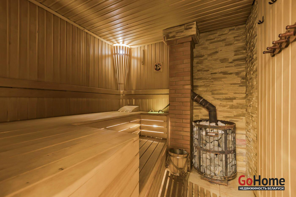 На первом этаже – сауна, душевая, просторная зона отдыха 49.6 м с джакузи и камином на дровах. Теплые полы.