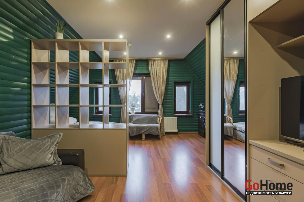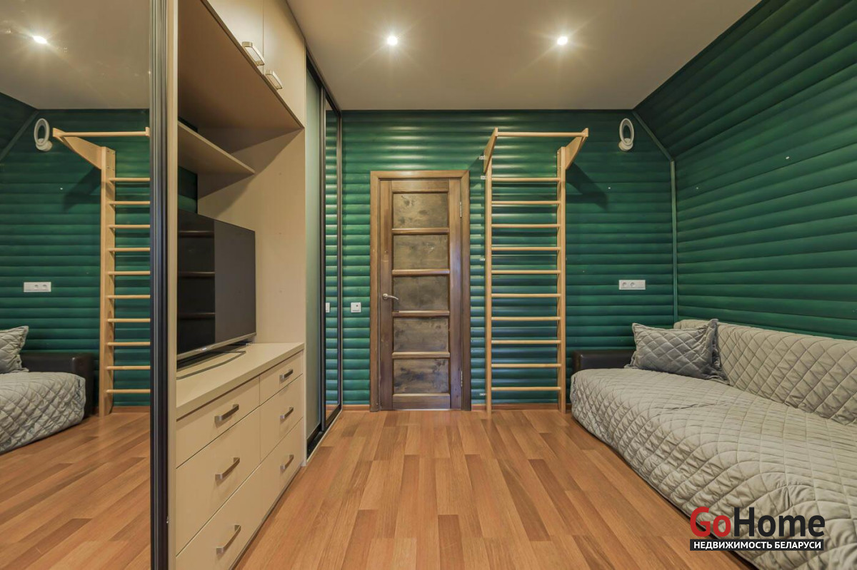 *** Ванная с постирочной (5.2 м); туалет. Большая гардеробная (9.6 м) с приватной зоной для дам. Прихожая со шкафом-купе – 8.6 м; !!! Второй этаж – это спальная зона. Спальня для взрослых (14 м); детская 12.2 м (в техпаспорте -холл); жилая комната (24.2 м). Туалет;