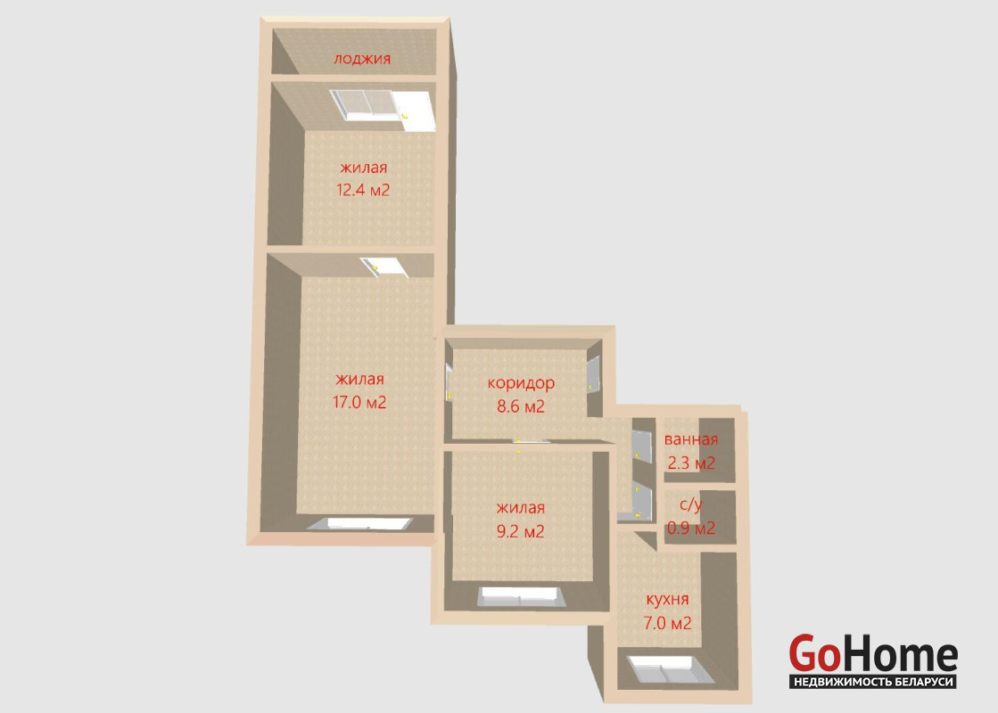 -Общая площадь 58.4 кв.м., а жилая – 38.6 кв.м.