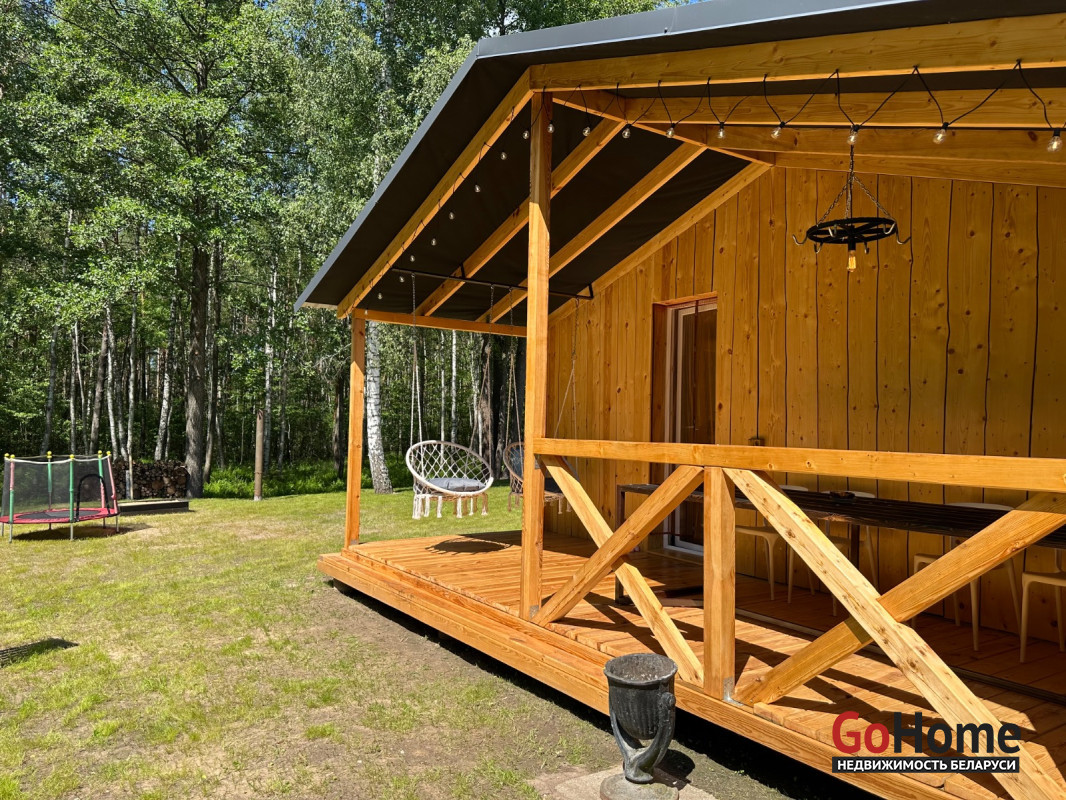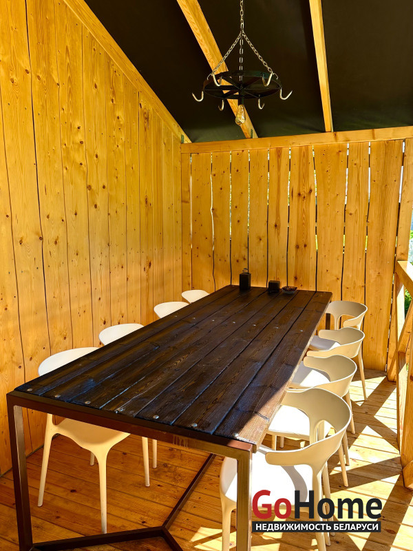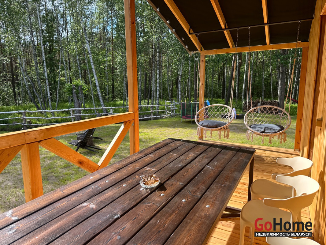 Вместительность 10 человек. В доме есть 4 комнаты в каждой 2-х спальная кровать, прихожая с большим диваном и уличная терраса с качелями. На территории собственная скважина.