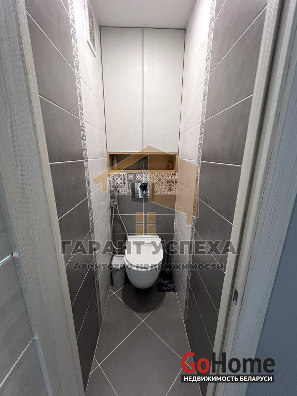 Санузел облицован современной керамической плиткой, заменена сантехника, полотенцесушитель. Проведена новая электропроводка.