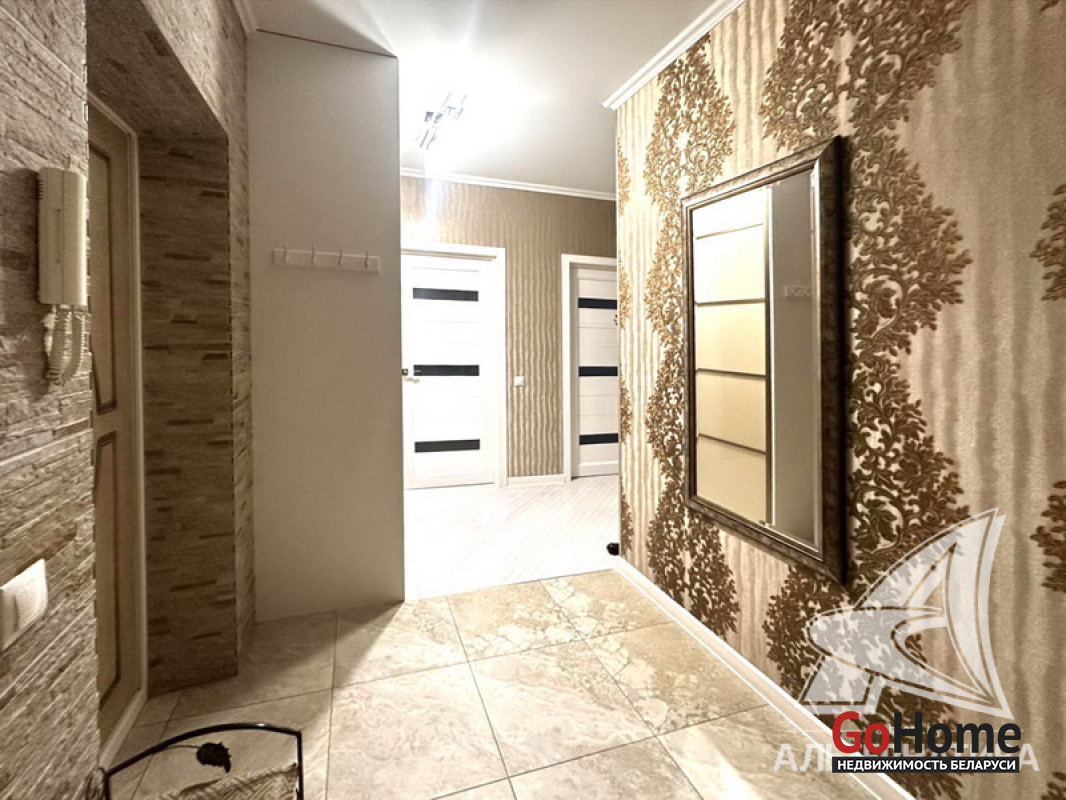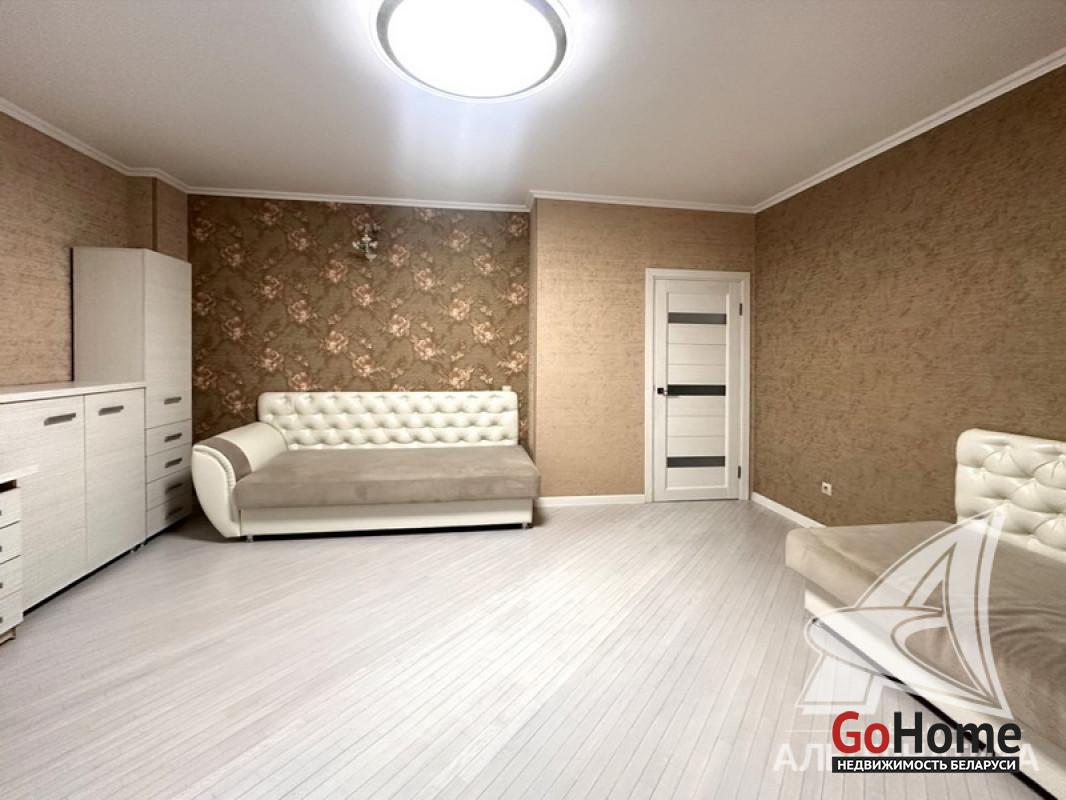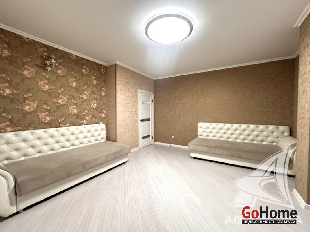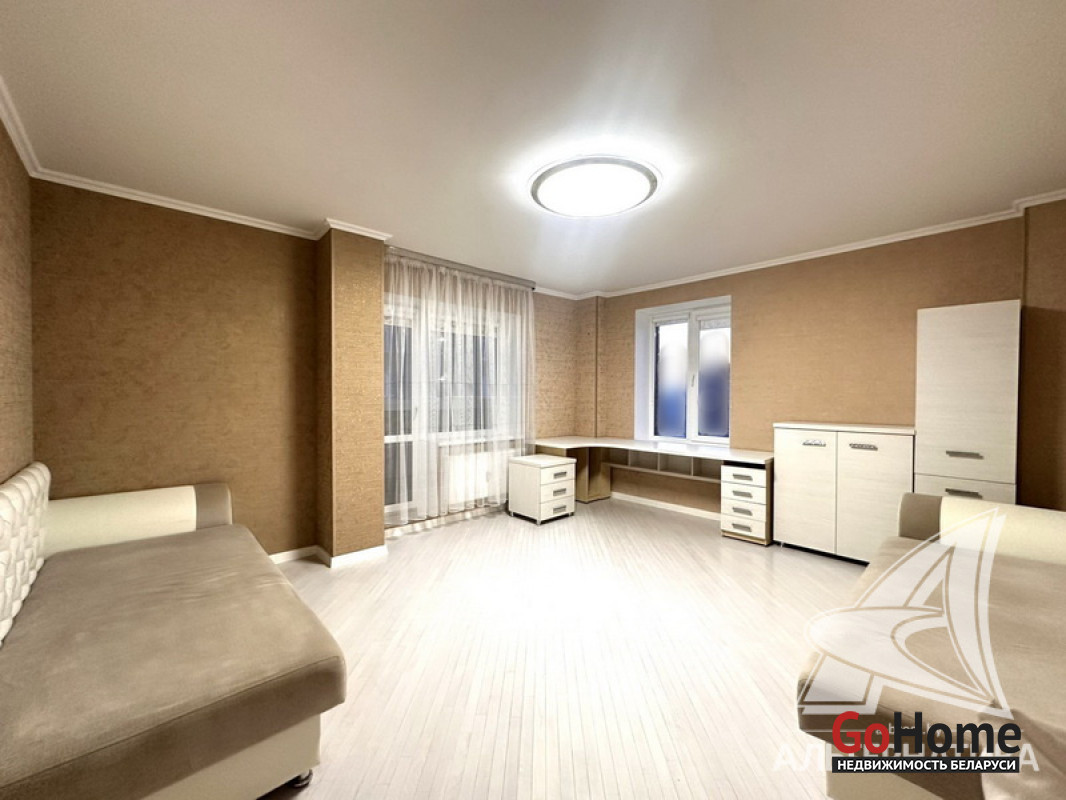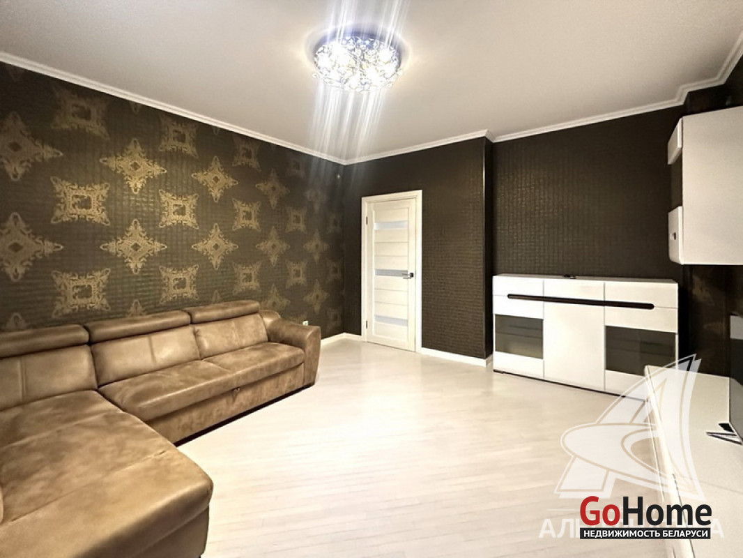 3-комнатная квартира, г. Брест, ул. Морозова, 2013 г.п., 14 / 17 ж/б каркас + блок + кирпич, 87,0 / 84,4 / 50,4 / 9,8, санузел раздельный, балкон застеклен, стеклопакеты, межкомнатные двери - массив, входная дверь металлическая, потолки (2,7 м) - снежка, полы (положены на стяжку) - паркет (беленый дуб), есть подогрев пола (в кухне), стены оклеены обоями (производство Италия), в санузле современная плитка, домофон. Кухонный гарнитур, электрическая варочная поверхность, духовой шкаф, вытяжка, холодильник, обеденная группа, два шкафа-купе, вся корпусная и мягкая мебель, светильники, элементы декора. Квартира с хорошим ремонтом. Квартира расположена на две стороны. Чистый подъезд. Пассажирский и грузовой лифты. Система видеонаблюдения. Лот - 260262