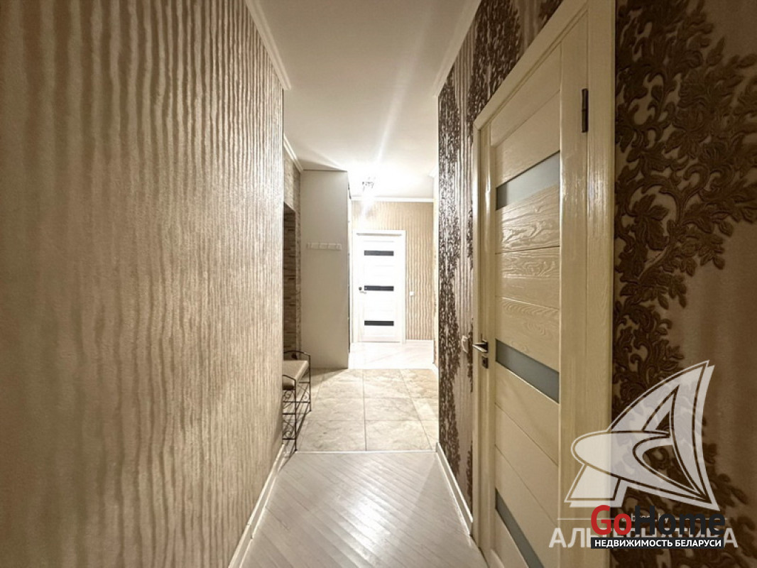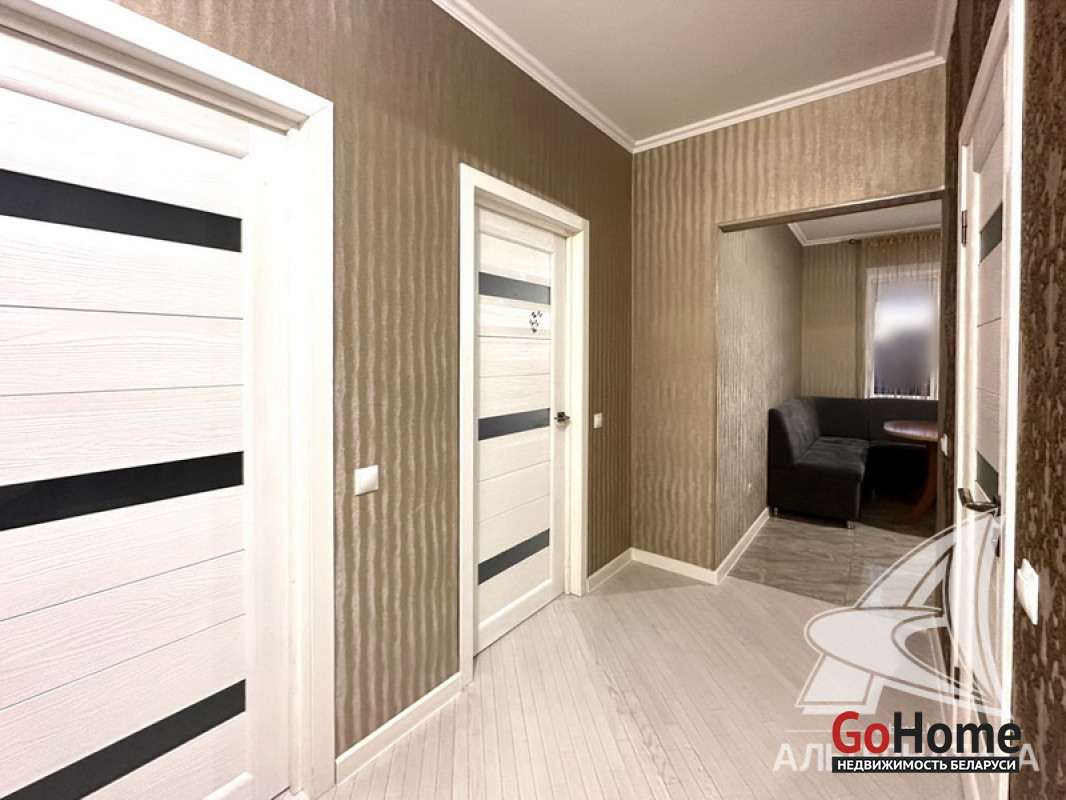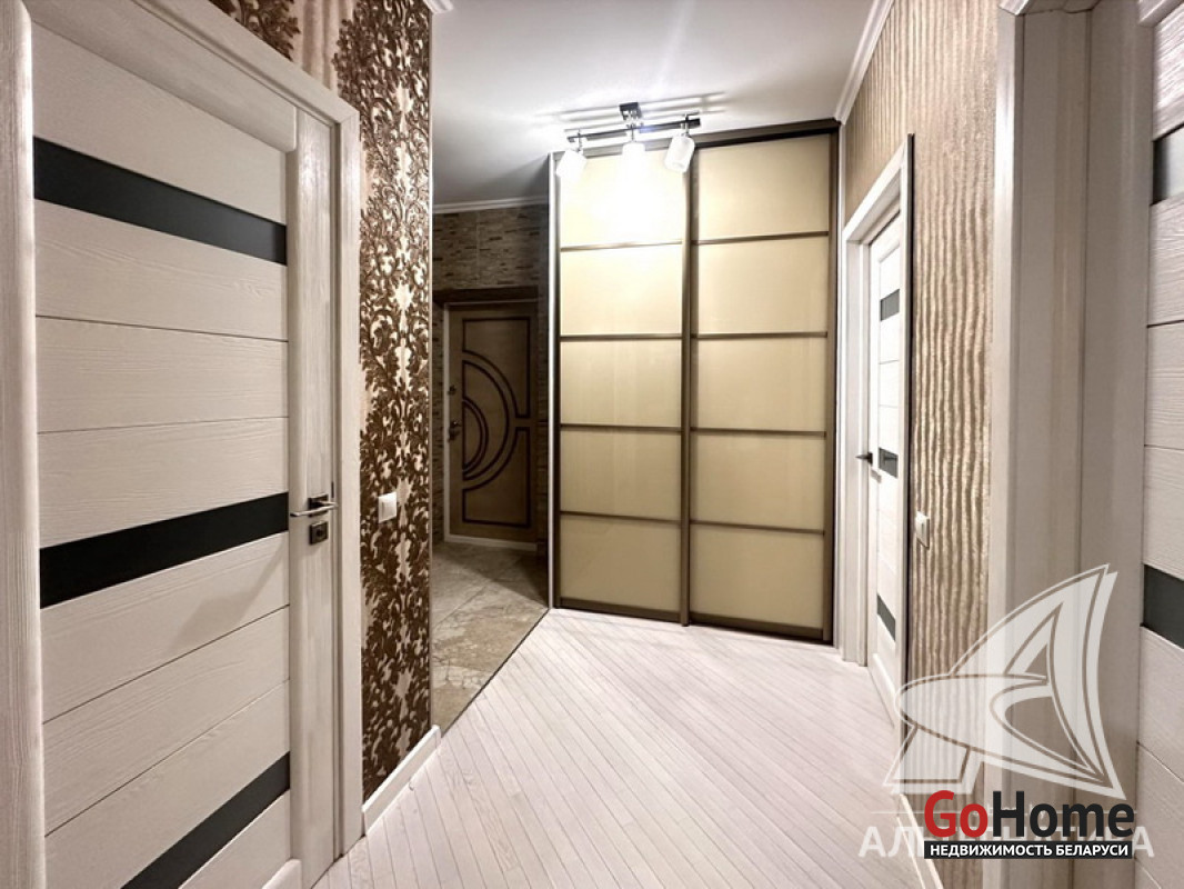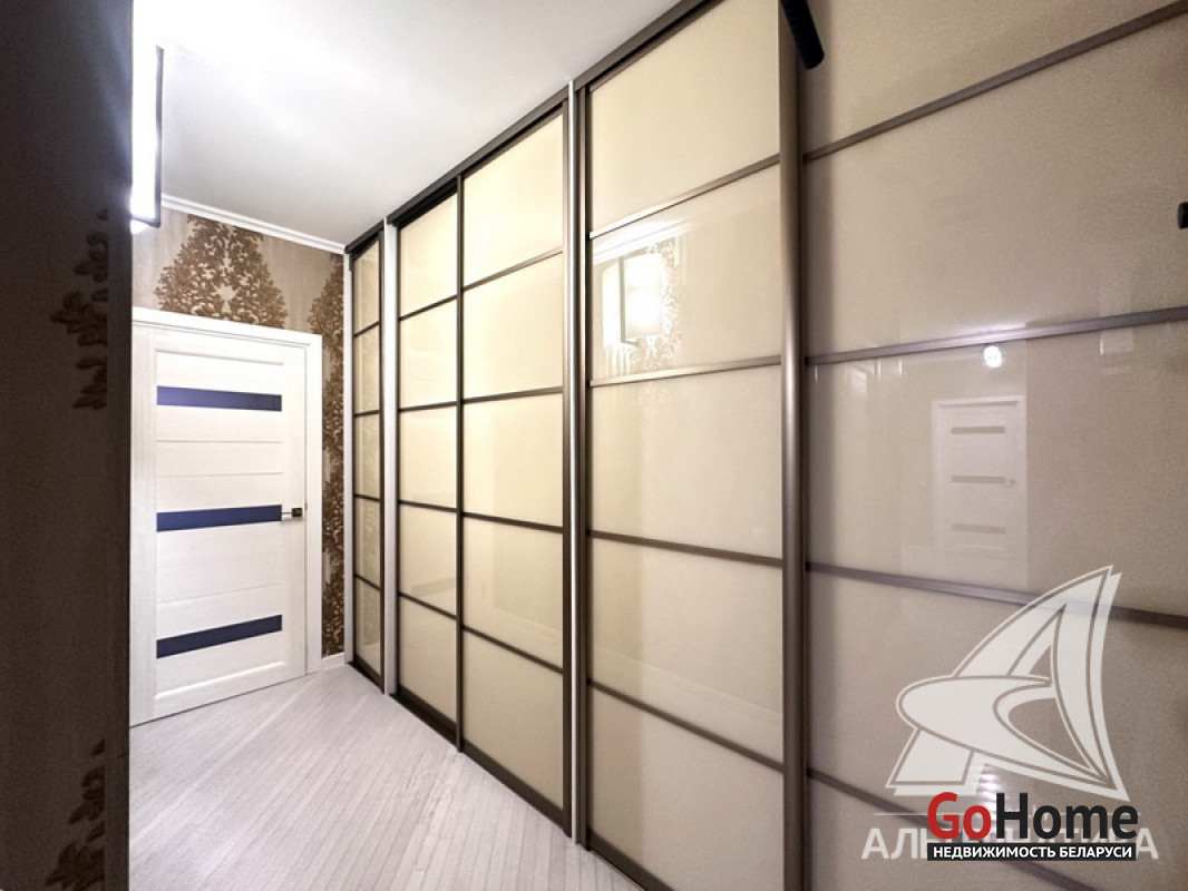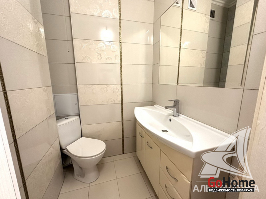 3-комнатная квартира, г. Брест, ул. Морозова, 2013 г.п., 14 / 17 ж/б каркас + блок + кирпич, 87,0 / 84,4 / 50,4 / 9,8, санузел раздельный, балкон застеклен, стеклопакеты, межкомнатные двери - массив, входная дверь металлическая, потолки (2,7 м) - снежка, полы (положены на стяжку) - паркет (беленый дуб), есть подогрев пола (в кухне), стены оклеены обоями (производство Италия), в санузле современная плитка, домофон. Кухонный гарнитур, электрическая варочная поверхность, духовой шкаф, вытяжка, холодильник, обеденная группа, два шкафа-купе, вся корпусная и мягкая мебель, светильники, элементы декора. Квартира с хорошим ремонтом. Квартира расположена на две стороны. Чистый подъезд. Пассажирский и грузовой лифты. Система видеонаблюдения. Лот - 260262