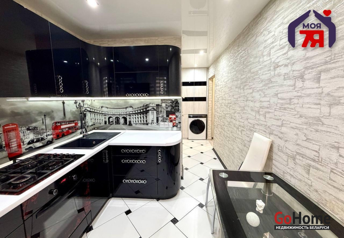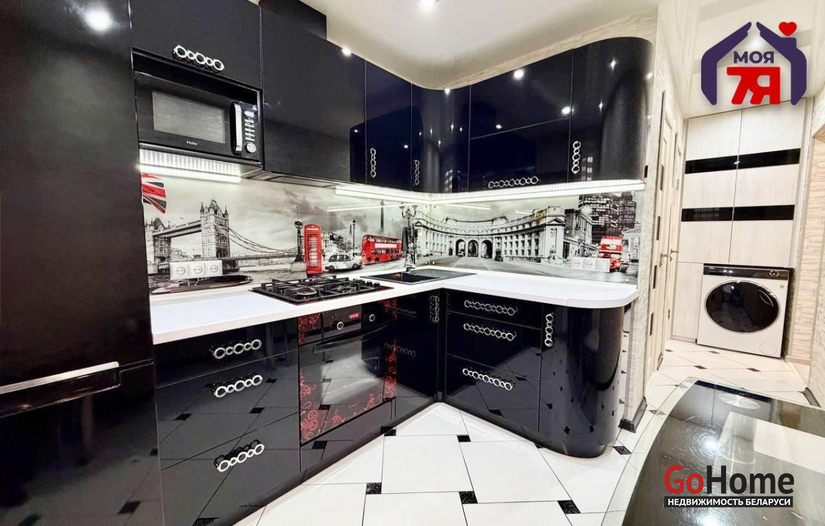 -Встроенная мебель остаётся: современный кухонный гарнитур, 2 шкафа-купе, система хранения над стиральной машиной.