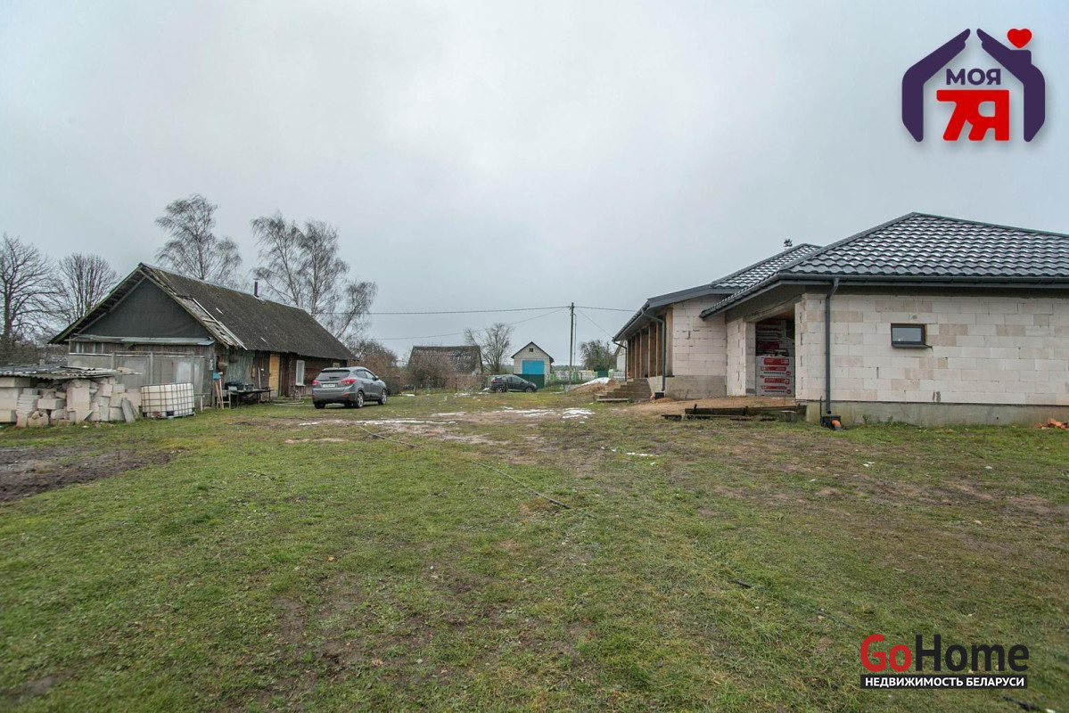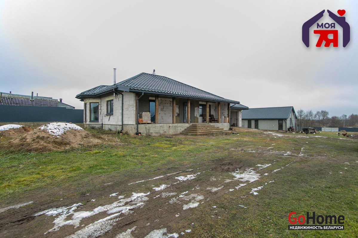 ️Просторный одноуровневый дом 150 кв.м. рядом с Молодечно, готовый под чистовую отделку, с тёплым полом, камином, большими окнами и продуманной планировкой. Коммуникации подключены, есть гараж, погреб и дополнительные постройки. Участок 25 соток + 22 сотки ЛПХ с собственным прудом, садом и двумя въездами обеспечивает простор, приватность и потенциал для развития.