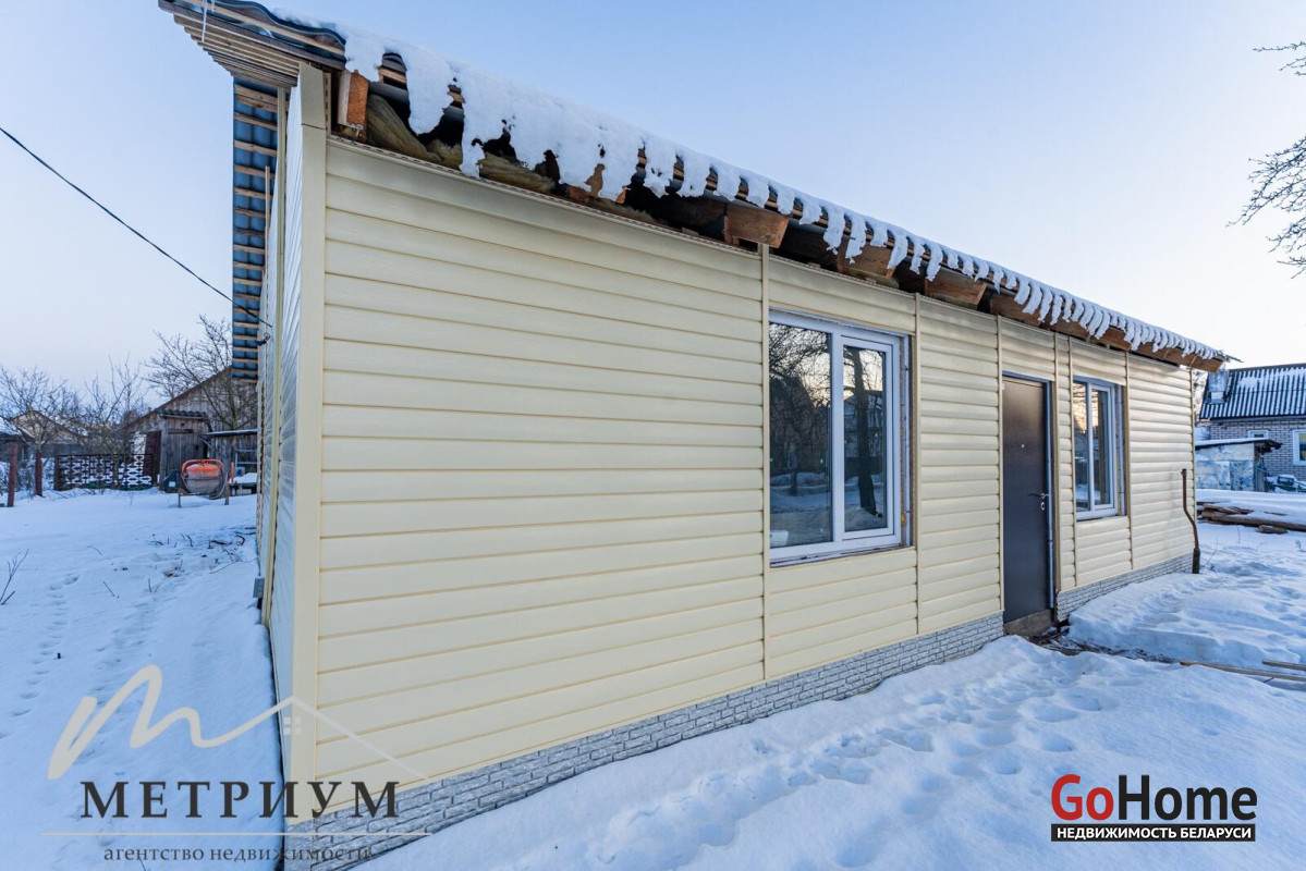 Стены из дерева, снаружи обшиты сайдингом, внутри гипсокартоном, кровля покрыта металлочерепицей.