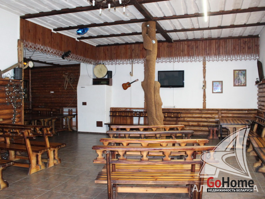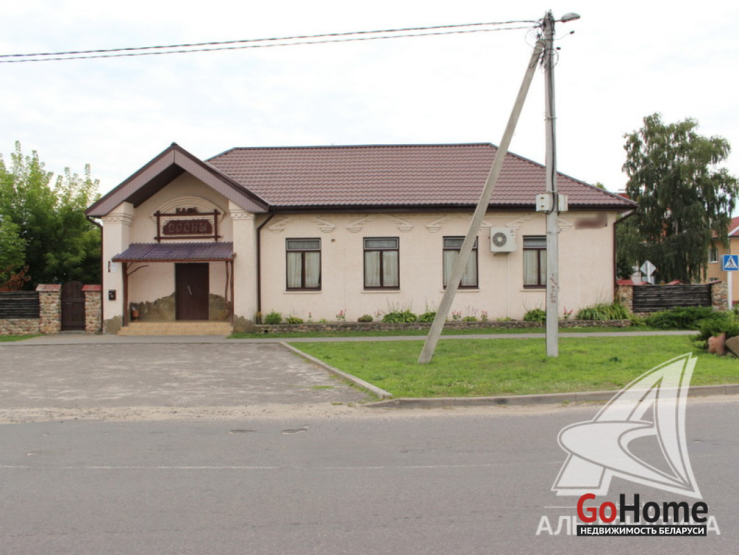 Здание кафе в собственность в г.п. Домачево Брестского района общей площадью 246,1 кв.м, расположенное на земельном участке площадью 0,1307 га. Действующий объект с оборудованием. Отдельно стоящее капитальное строение. Технические характеристики здания: фундамент бетонный, полы плитка, стены кирпичные, оштукатурены, крыша шиферная, окна, двери - ПВХ. Высота потолков - 3 м. Коммуникации: электричество - 220, 380 Вт, отопление на твердом топливе, водоснабжение - гидрофор, канализация местная. Земельный участок площадью 0,1307 га предоставлен собственнику в долгосрочную аренду (до 19.12.2057 г.) для обслуживания здания. Прилегающая территория огорожена, благоустроена, есть погреб и склад. Рассматриваются все варианты. Лот - 260260