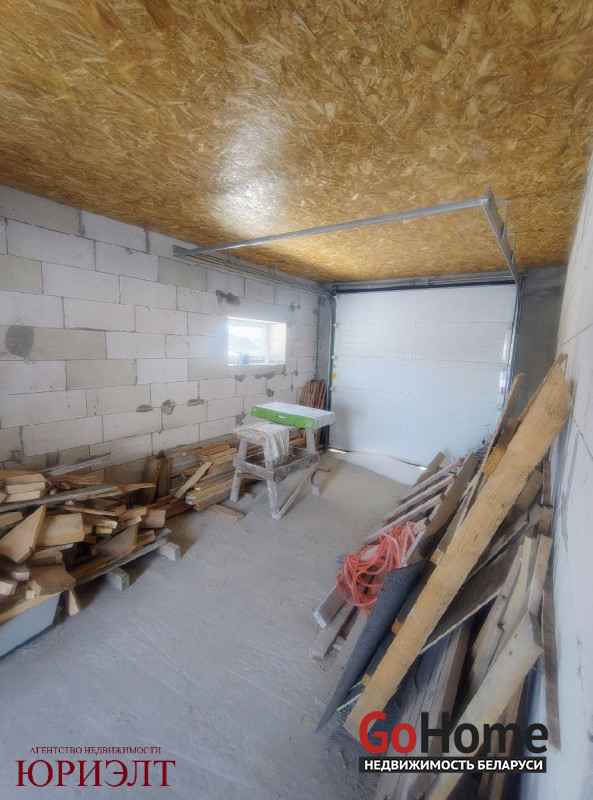 Из дома оборудован выход в гараж (24,1 кв.м.). Деревянная лестница ведёт на 2-й этаж с 1 жилой комнатой (48,5 кв.м), из которой, при Вашем желании, можно создать две/три комнаты. Высота потолка - 2,77 м.