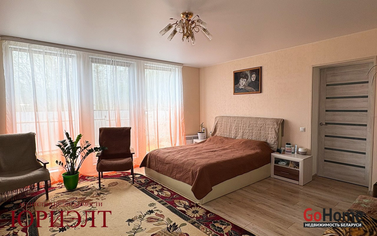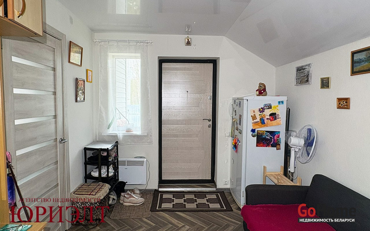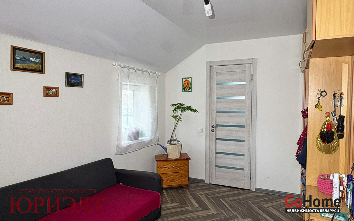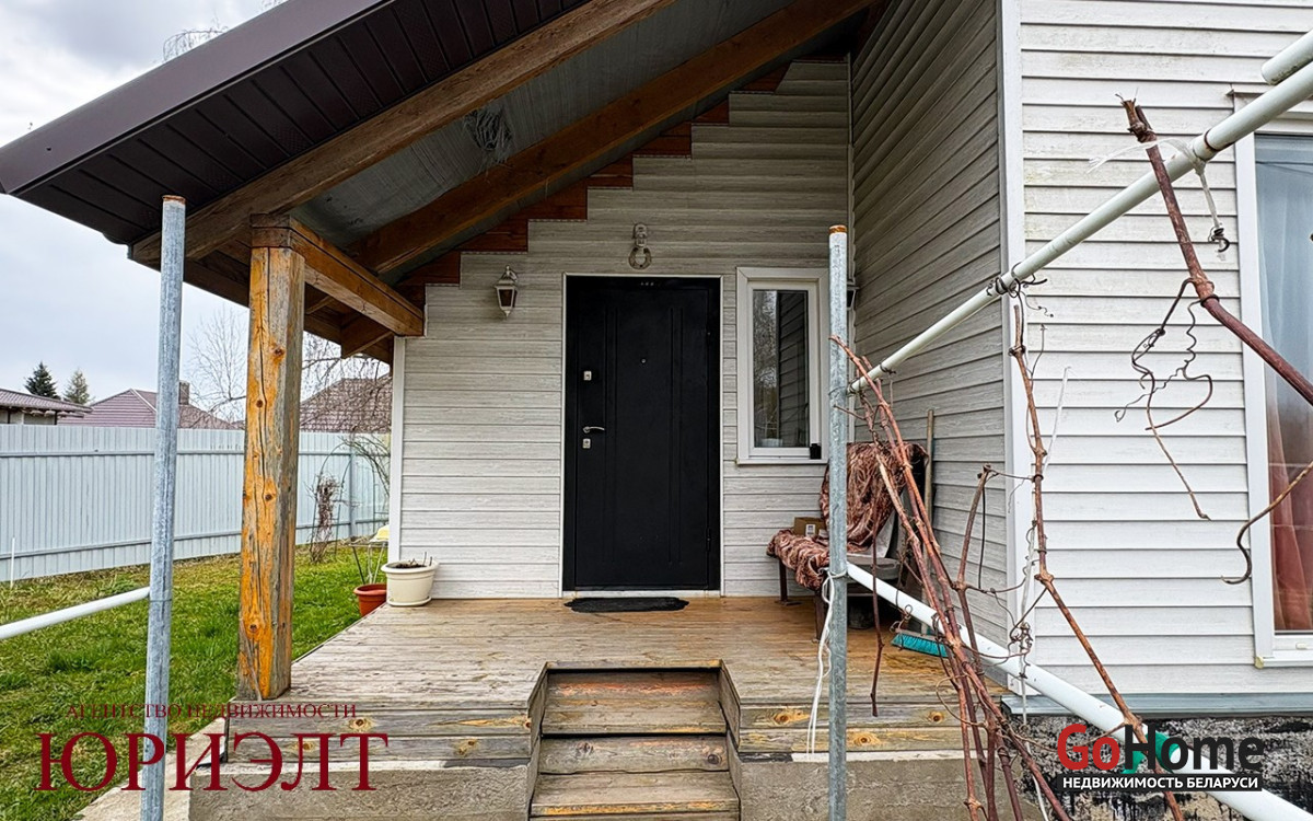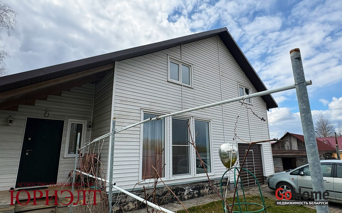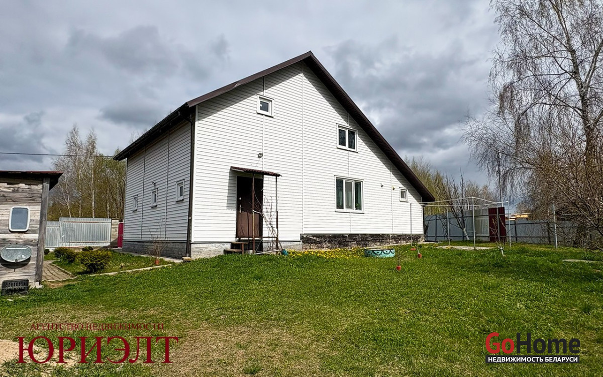 Продаётся жилой дом в 10 километрах от города в коттеджном посёлке, экологически чистом районе. Дом каркасный, обшит сайдингом, крыша ондулин. Первый этаж полностью в жилом состоянии. Большой совмещённый санузел с душевой кабиной, прихожая, гостиная с окнами в пол. Кухня с выходом в гараж и в сад. На втором этаже три комнаты без отделки. Дом отапливается электричеством, вода центральная, канализация местная. Есть баня с летней кухней и дровник. Участок ровный, сухой, заложен молодой сад с плодовыми деревьями.