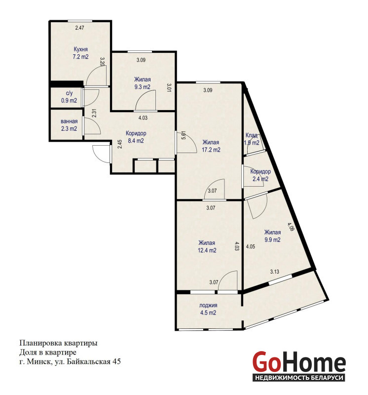 Выгодное предложение! 2/3 доли в 4-к квартире на Байкальской, 45