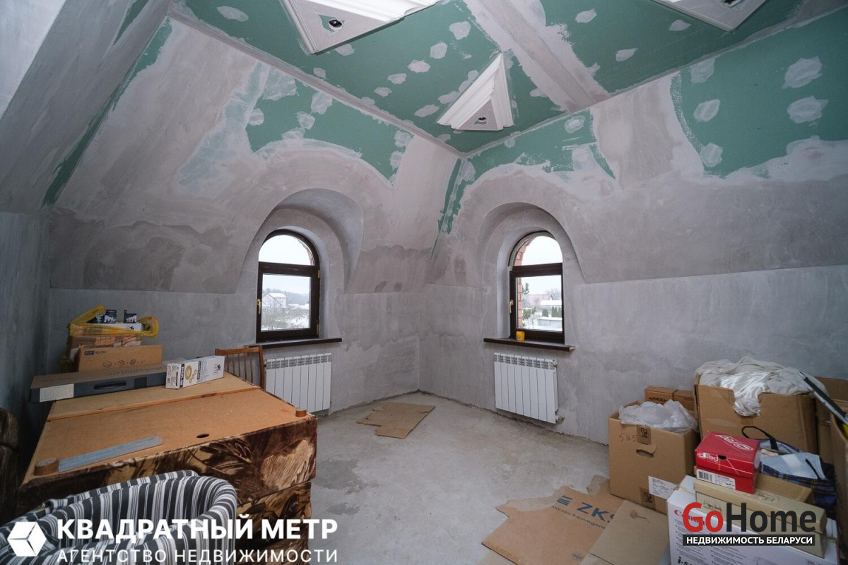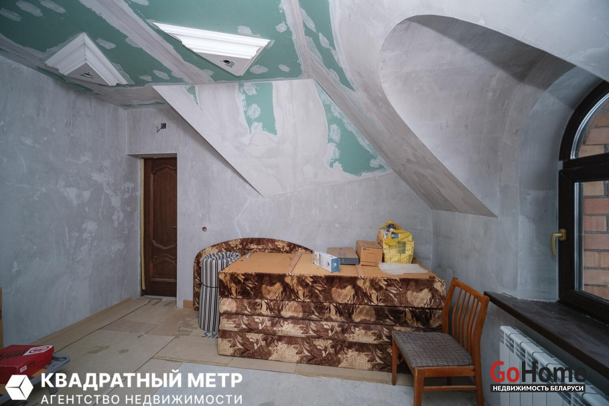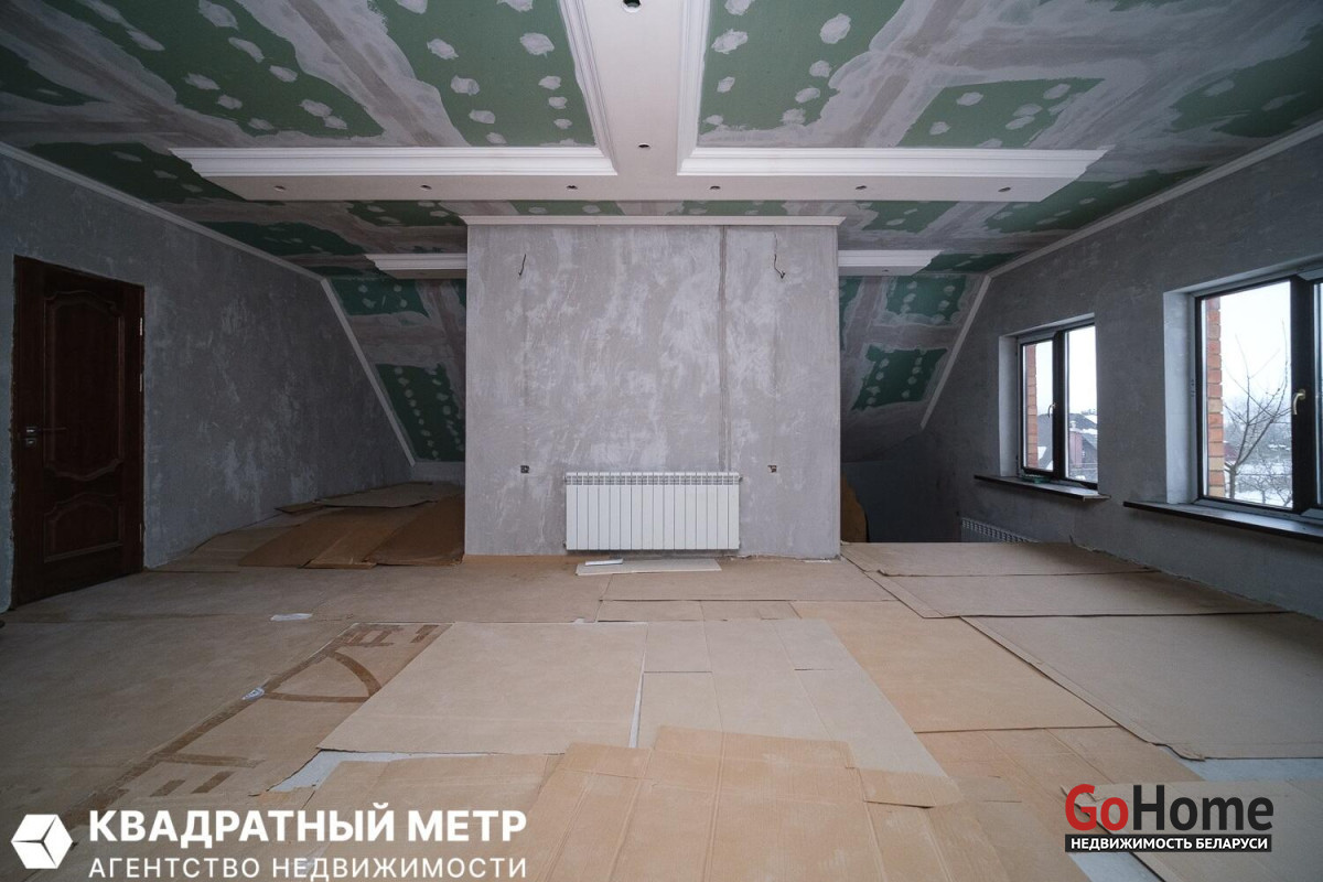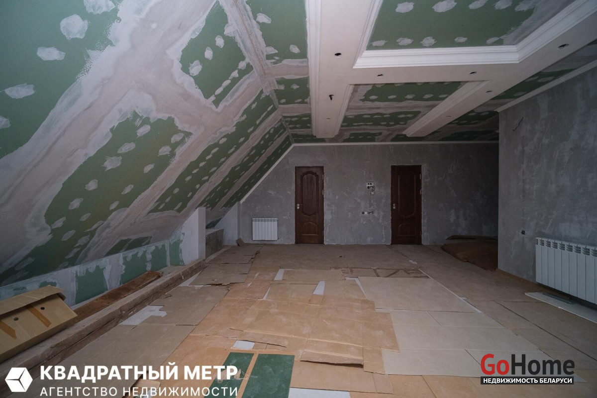 Пол во всём доме выполнен из художественного ламината. Есть большой чердак, который можно использовать как зону хранения. На каждом уровне установлены индивидуальные счётчики электроэнергии (щиты). Есть два гаража, в одном из них находится яма. В цоколе - подвал и котельная. К дому подведено 2 электро счётчика 380 вольт. Ровный участок квадратной формы огорожен со всех сторон без хоз построек, что даёт возможность новым хозяевам построить беседку, баню и реализовать ландшафтный задумки.