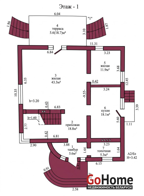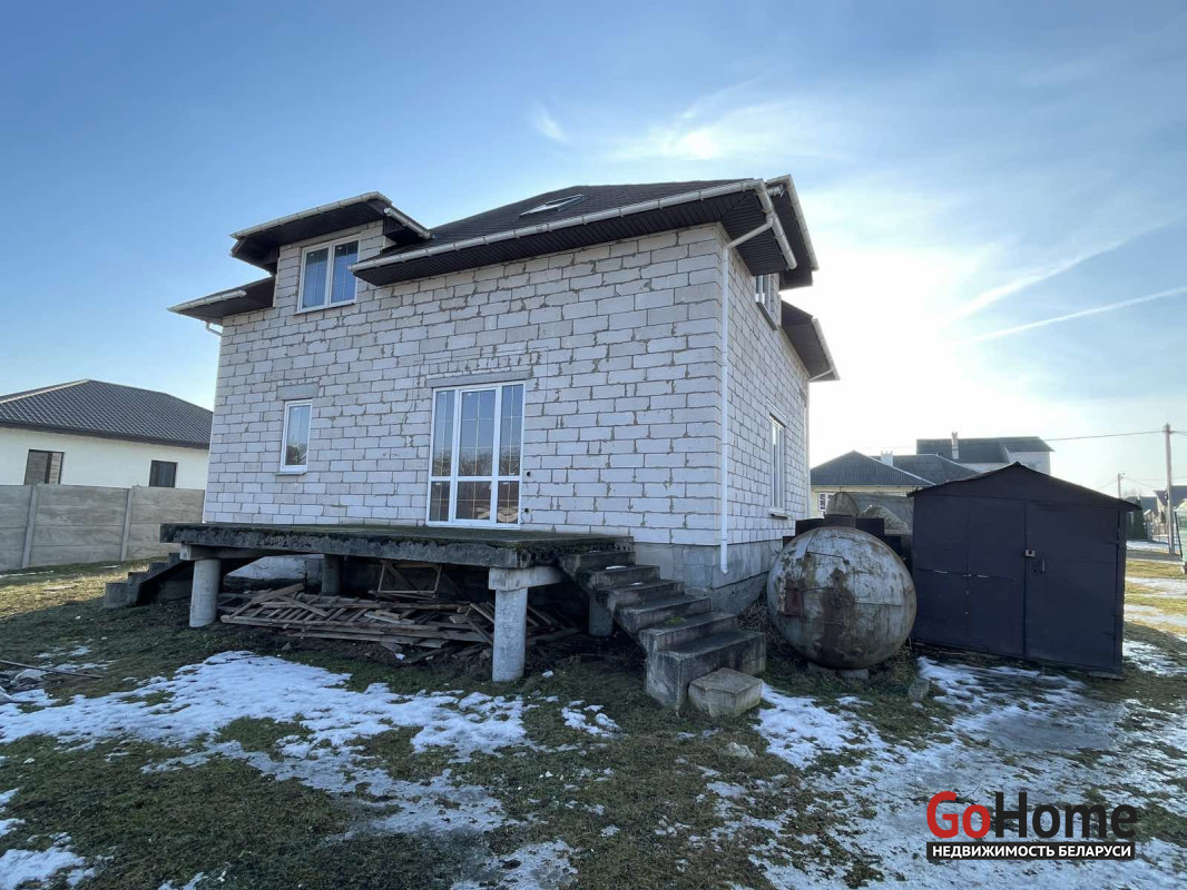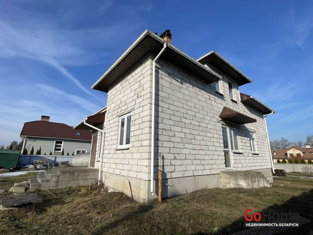 Дом выполнен из качественных материалов. Фундамент — ФБС. Материал стен — газосиликатный блок. Кровля – мягкая кровля .Окна ПВХ стеклопакеты. Плиты перекрытия ж/б. Количество комнат – 5 (43.3 м2/30.8 м2/20.4 м2/12.2 м2/11.9 м2).Кухня 18.1 м2.