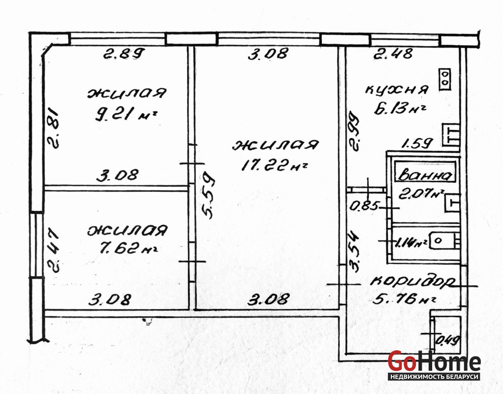 3-комнатная квартира, площадью 49,6 м.кв.
